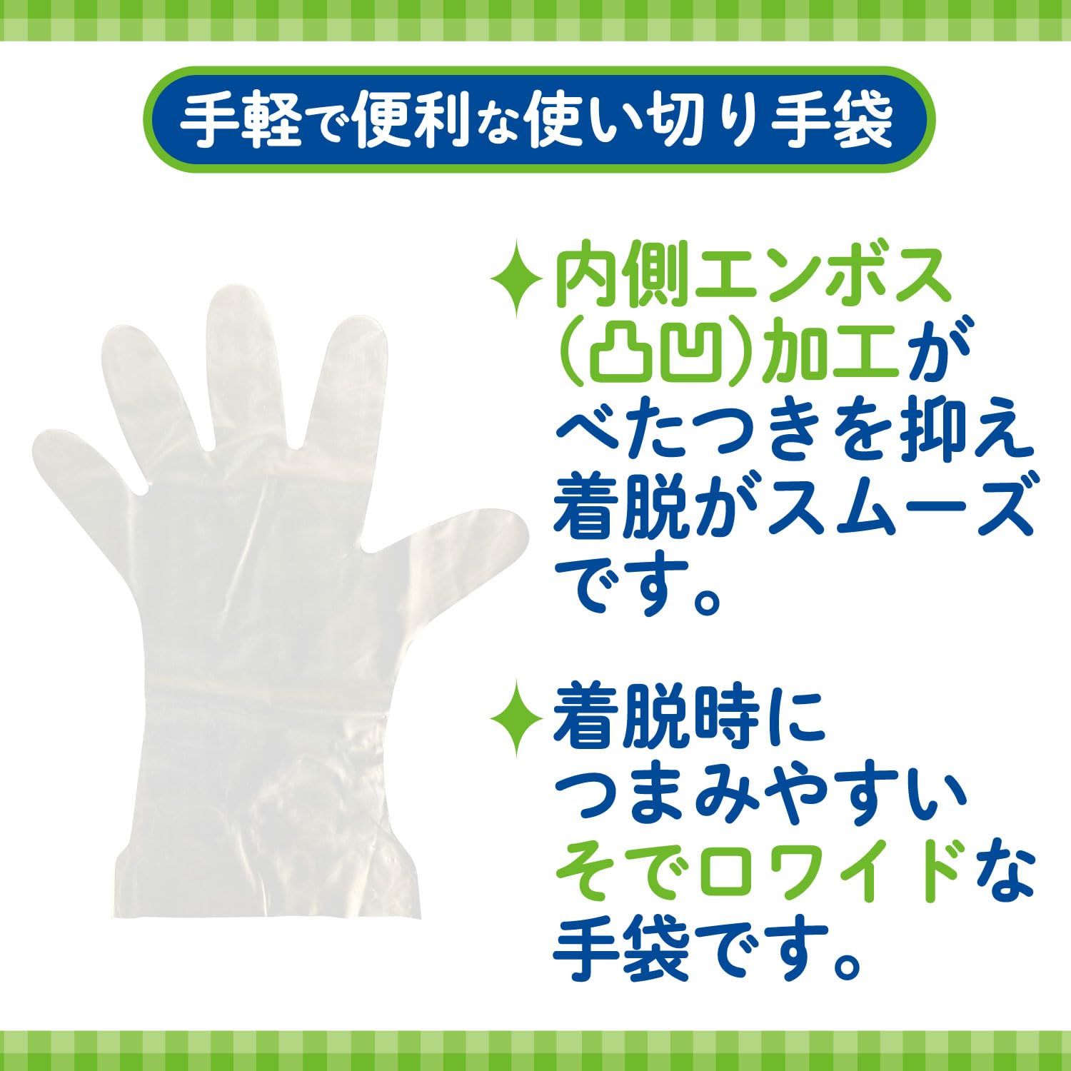 ●伸びる素材なので、指先にフィットして、素手感覚でお使いいただけます。●食品衛生法適合で調理にお使いいただけます。●極薄タイプの手軽で便利な使いきり手袋です。●内側のエンボス(凸凹)加工がべたつきを抑え着脱がスムーズです。●着脱時につまみやすいそで口ワイドな手袋です。●左右両用タイプの手袋です。●調理に、お掃除に、衛生対策に。●調理、下ごしらえ、盛り付けに。●毛染めに。●介護に。