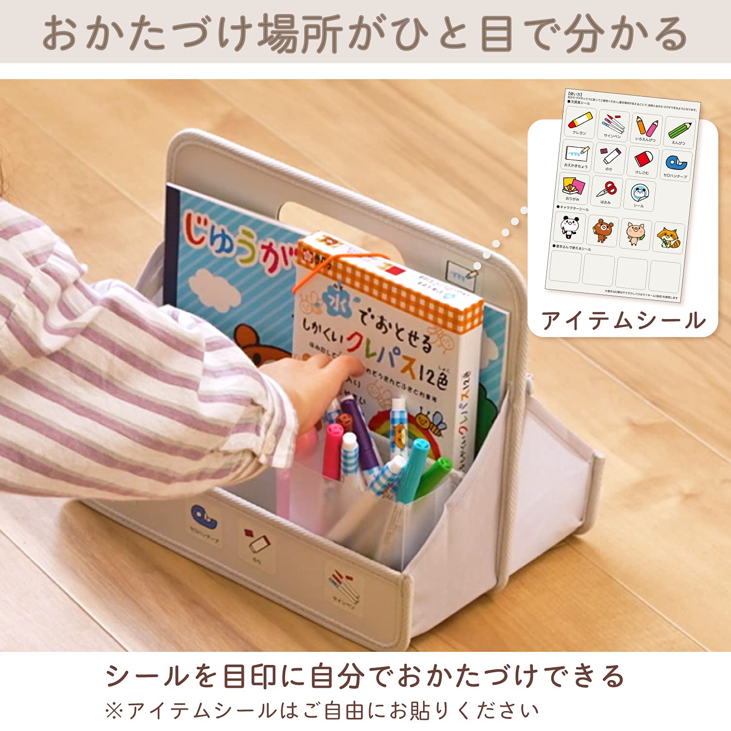 ・おかたづけ場所が一目でわかるシール付き