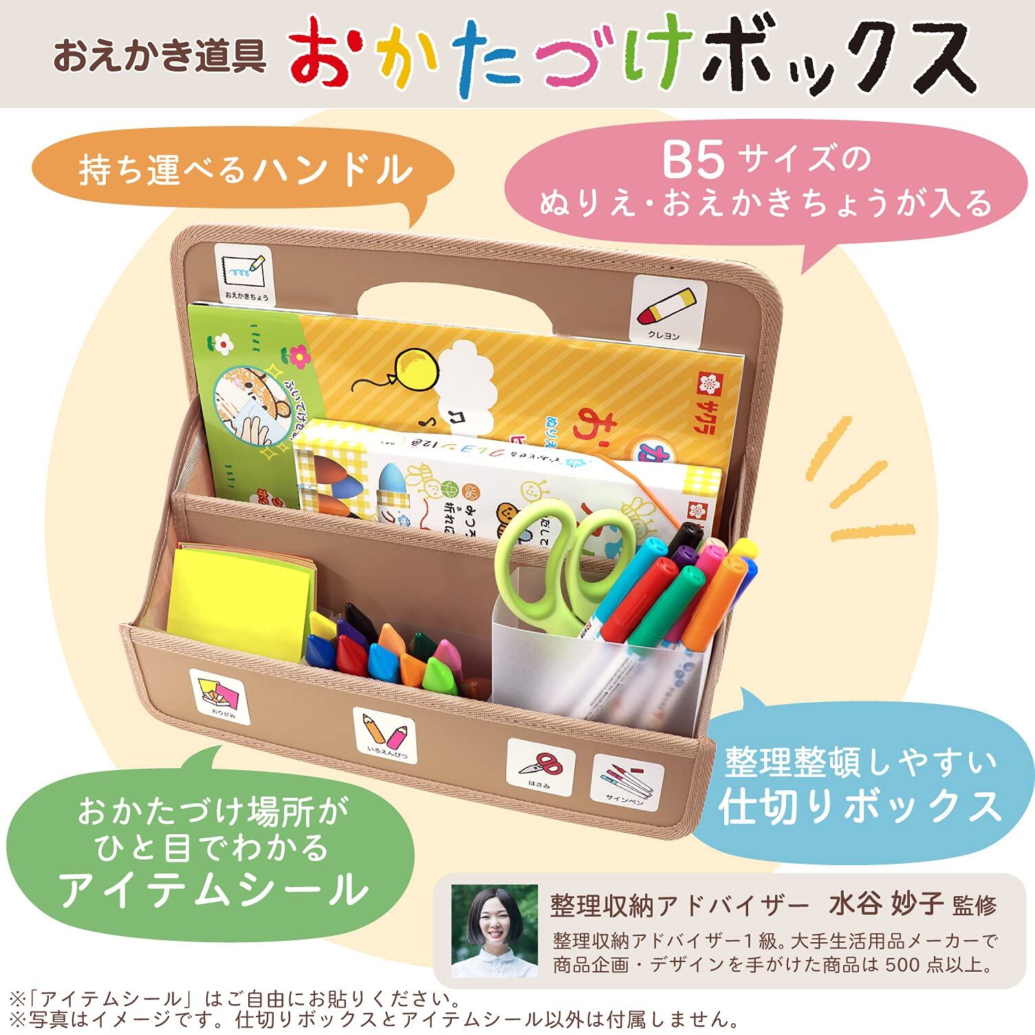 子どもの「おえかきを楽しみたい」気持ちと、親の「自分でおかたづけしてほしい」気持ちに寄り添い、子どもの成長をお手伝いできるような商品を目指し、整理収納アドバイザー水谷妙子さんに監修いただき誕生したおかたづけシリーズ。