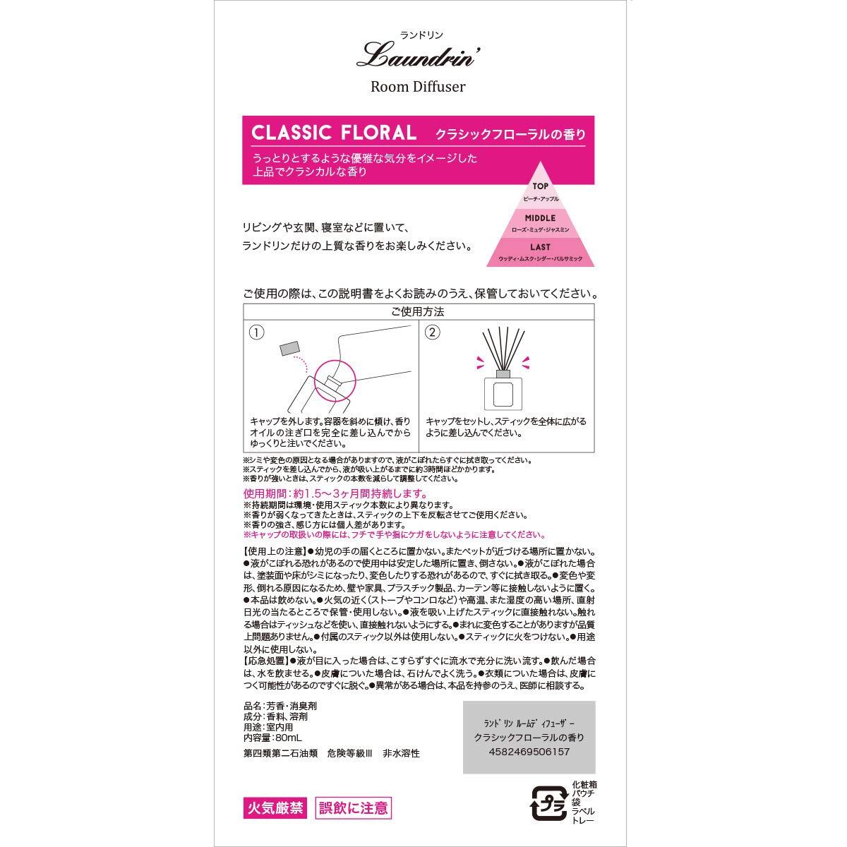 Laundrin'(ランドリン) ディフューザー クラシックフローラル 芳香剤 80ml