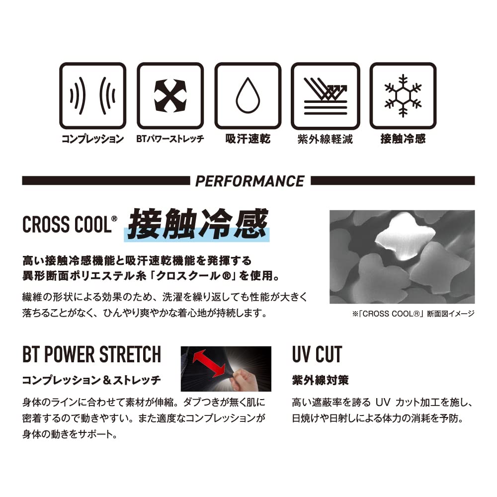 特徴:優れた吸汗速乾機能で汗を逃がし、さらりと快適な着用感をキープ。高い接触冷感を誇る「CROSS COOL??」を使用したアームカバー。