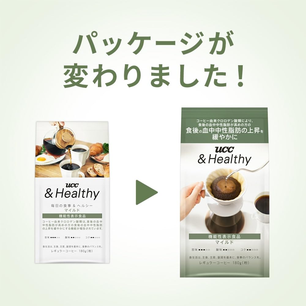 【人気】UCC &Healthy マイルド 180g×3個 レギュラーコーヒー(粉) 【機能性表示食品】