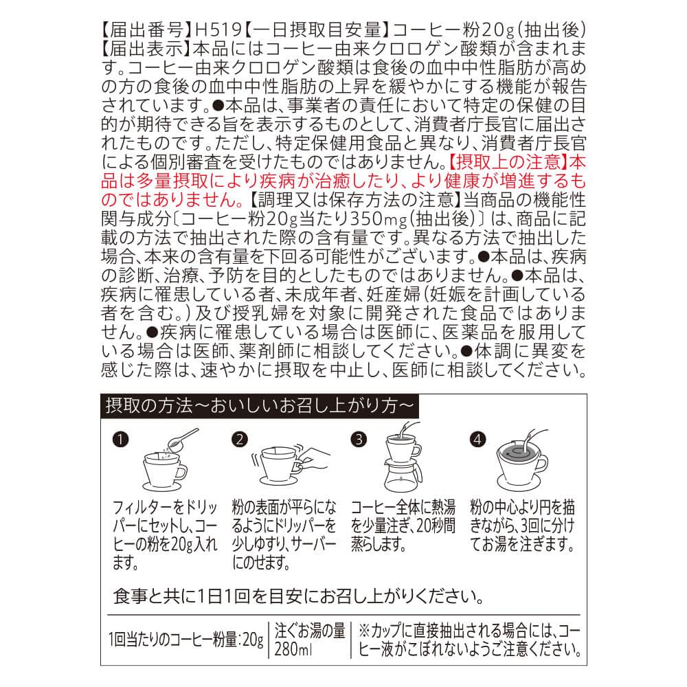原材料コーヒー豆のみ、おいしさにこだわった、機能性表示食品。