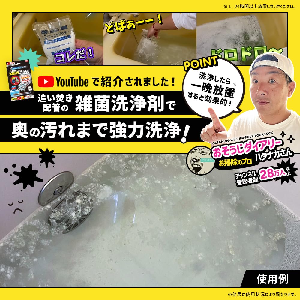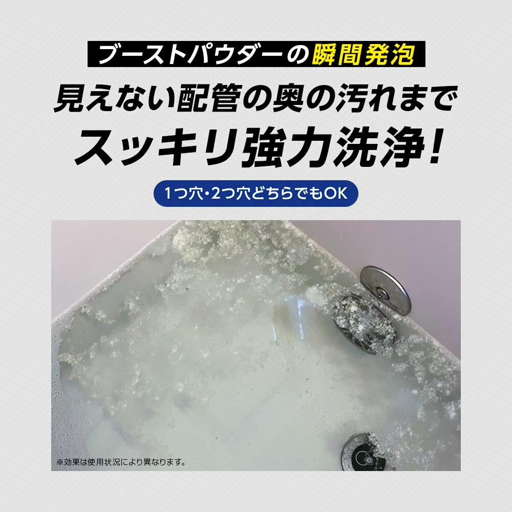 【ブーストパウダーの瞬間発泡】見えない配管の奥の汚れまでスッキリ強力洗浄!1つ穴・2つ穴どちらでもOK。カビ・雑菌・湯ドロ・ヌメリを洗浄してくれます。