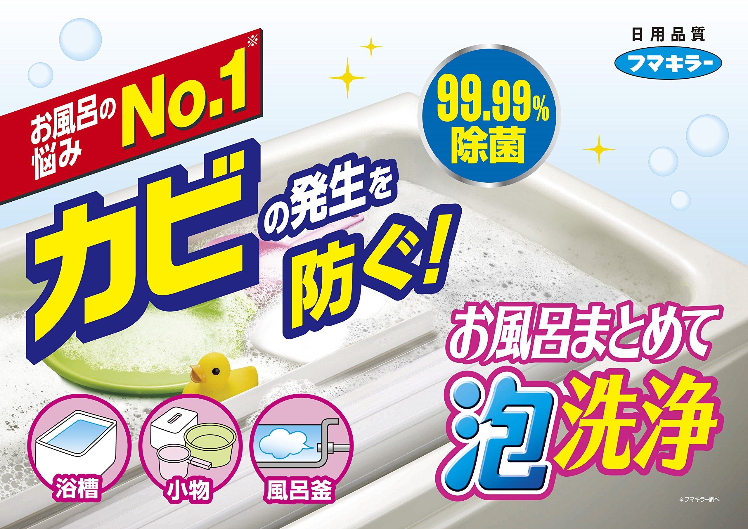 お風呂まとめて泡洗浄 4個パック 超密着泡で強力洗浄&99.99%除菌 風呂釜・小物 一晩つけ置き グリーンアップルの香り フマキラー 【まとめ買い】