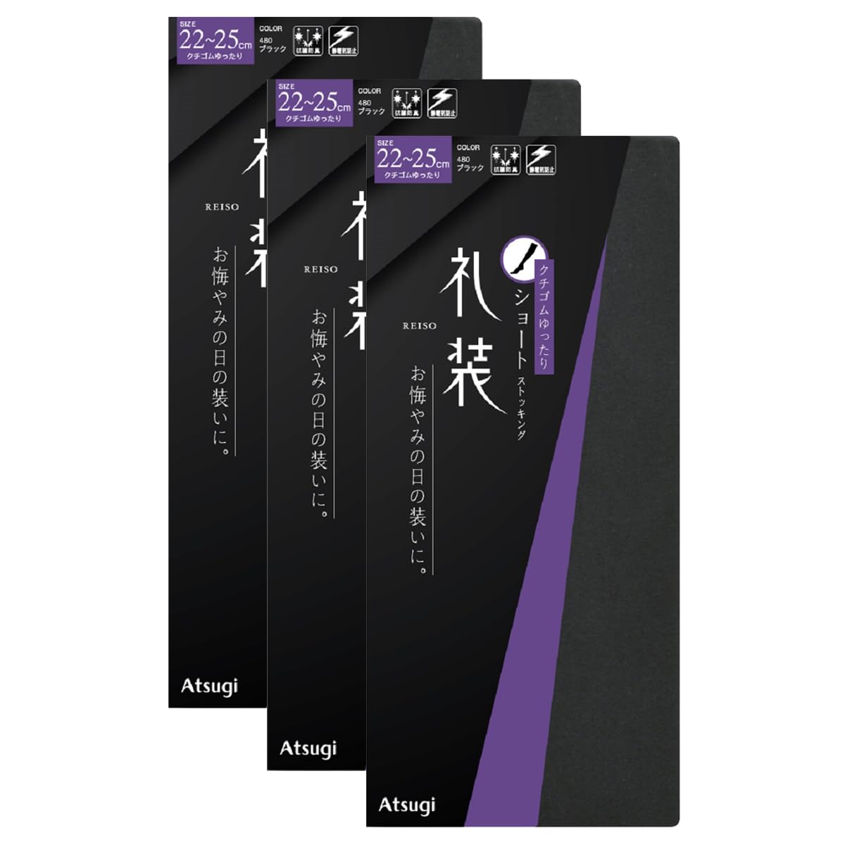 [アツギ] ストッキング [礼装] 黒ストッキング クチゴムゆったりひざ下丈 3足セット フォーマル FS3073・FS3078 レディース