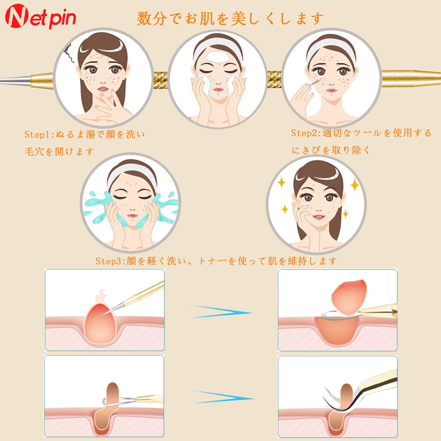 1. ? ピンセット 【セット構成】 Netpin 16個のツール、1個の収納ボックス、14個のにきび除去針を含み、あらゆる種類の頑固なにきび、にきび、膿瘍を除去し、さまざまな状況に応じて適切なツールを使用し、2つのクリップ、眉毛に使用できます、ノーズケア、顔全体をケアするためのツールのセット。