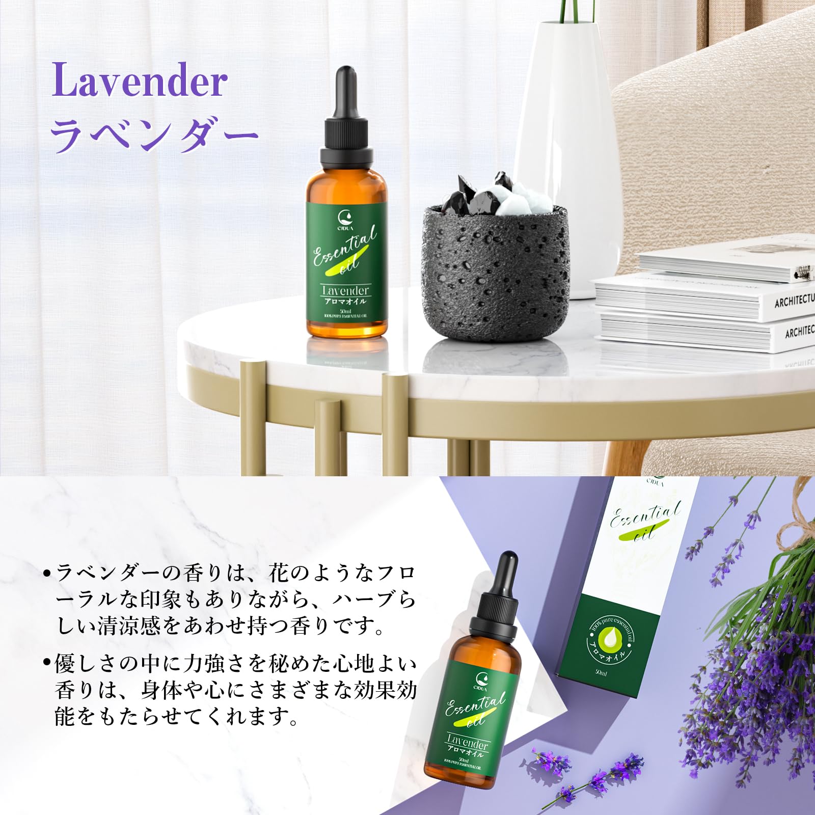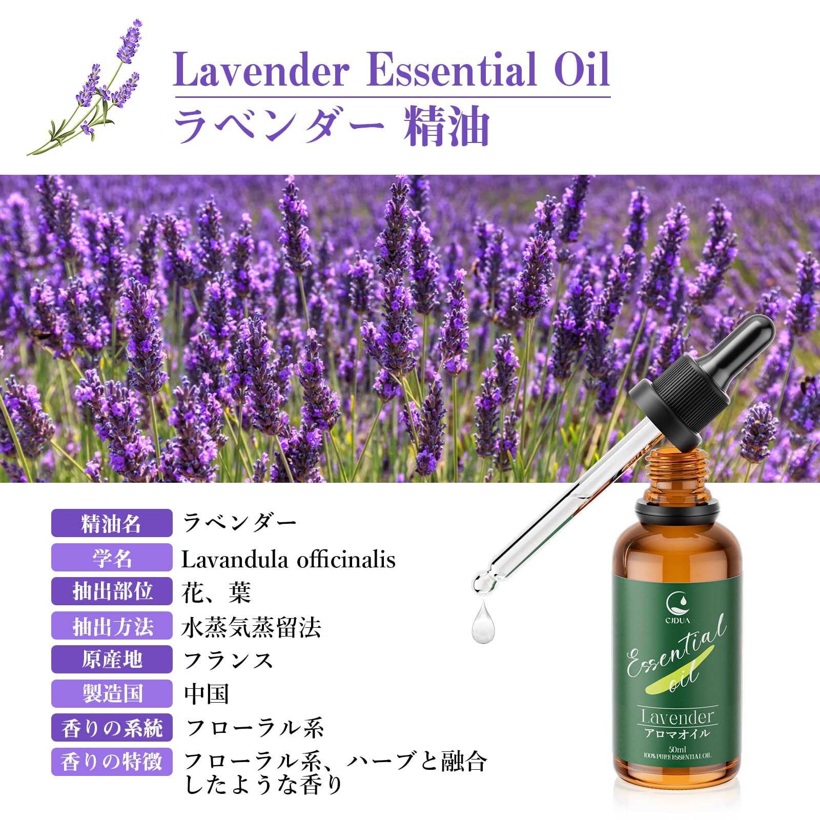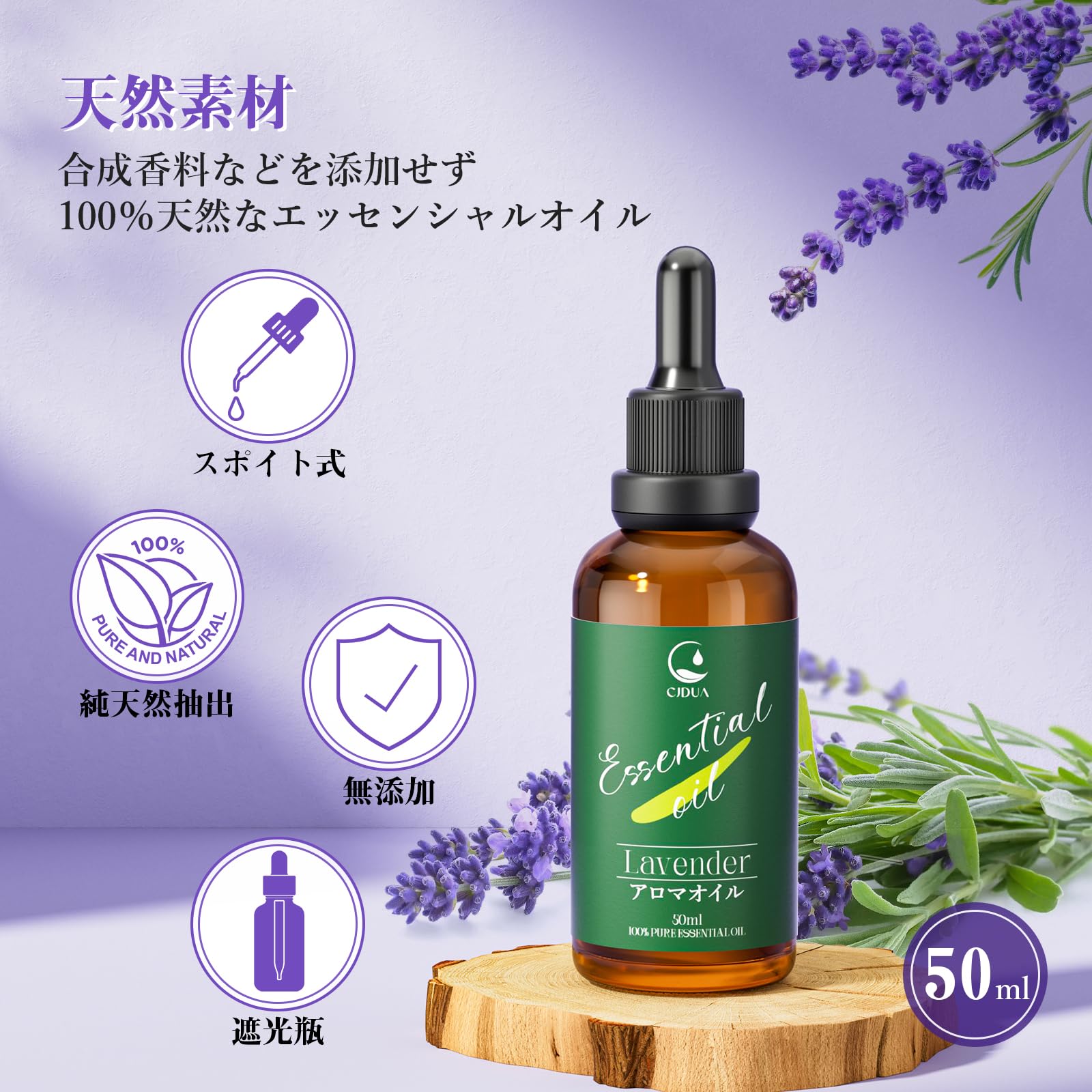 ラベンダー エッセンシャルオイル 50ml 精油 純天然抽出 自然な香り アロマオイル ディフューザー・アロマストーン・日常生活 アロマ初心者に プレゼントにも最適 Lavender Essential Oil