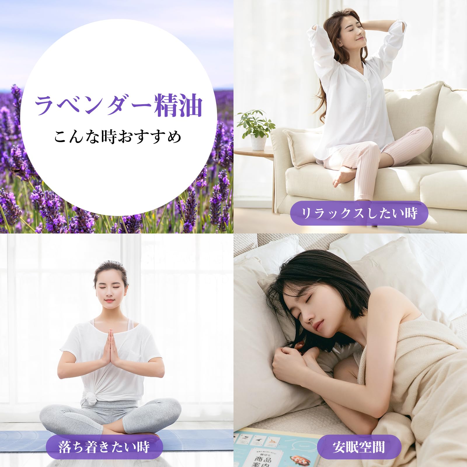 【100%純天然抽出】ラベンダー・エッセンシャルオイルは水蒸気蒸留法を用いて、ラベンダーの花、葉から抽出され、合成香料などを一切使用せず、天然芳香物です。天然香りの力を生かして、変化しがちな心と体を本来の姿へと戻してくれましょう。