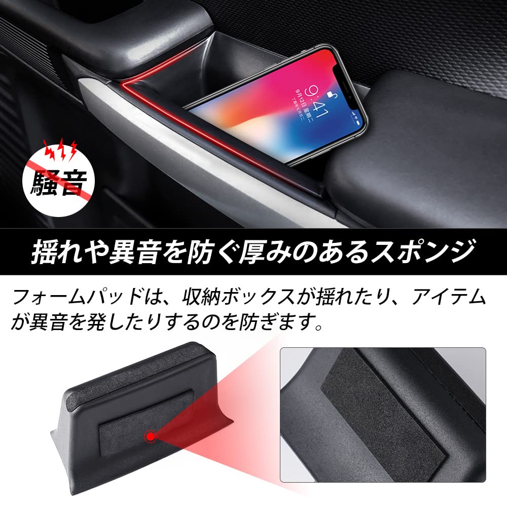 3.【収納性&滑り止め】:収納ボックスは小物などの保管に使用できます。スポンジマット付きなので、凸凹している道路で運転しても収納ボックスは振れたり、落ちたりすることを防止します。