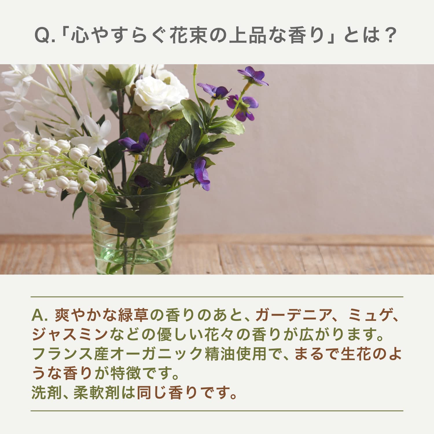 ●心安らぐ花束の香り…洗い立ての香りの印象はそのままに、リニューアル前よりも乾いた後の香りがアップ。やさしい生花の香りはそのままです。