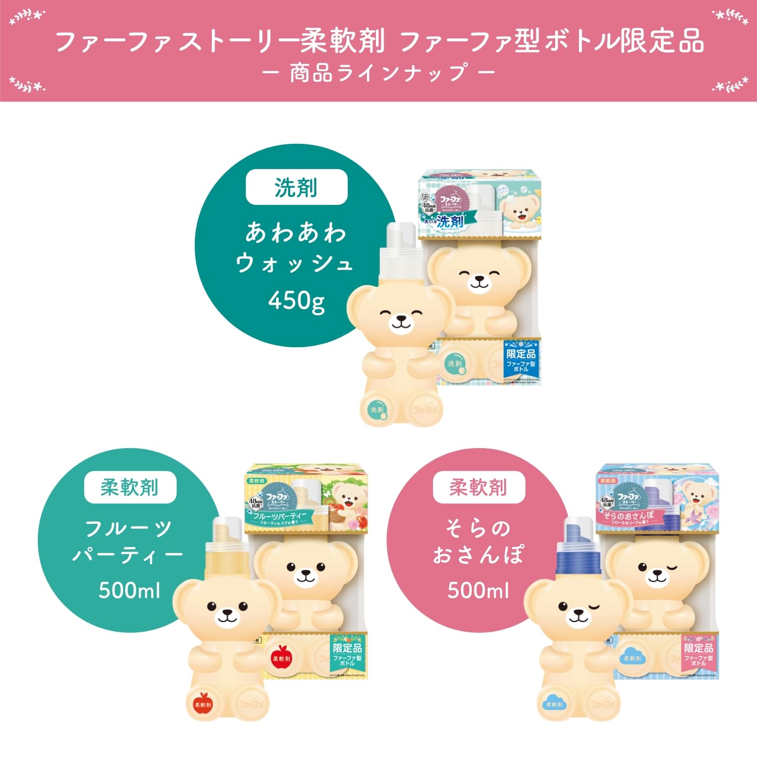 ファーファベアの形状を模したボトルに入ったストーリー柔軟剤。