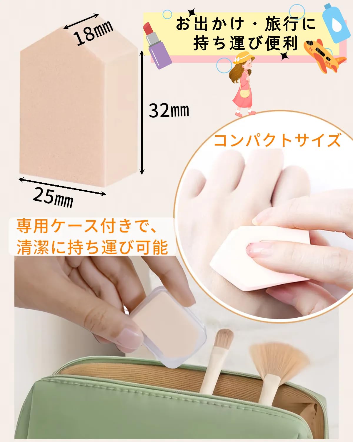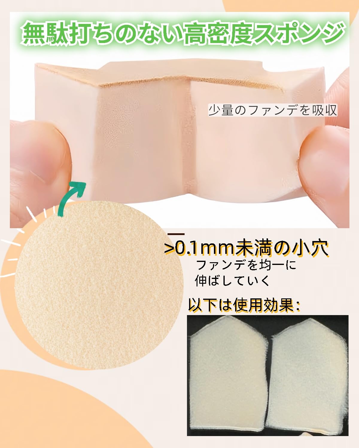 【無駄なく塗布できる高密度スポンジ】メイクスポンジは弾力優れた化粧用高密度ウレタンを採用、無駄に吸収したファンデの量が少なく、ファンデを均一に伸ばしていくことが実現できます。