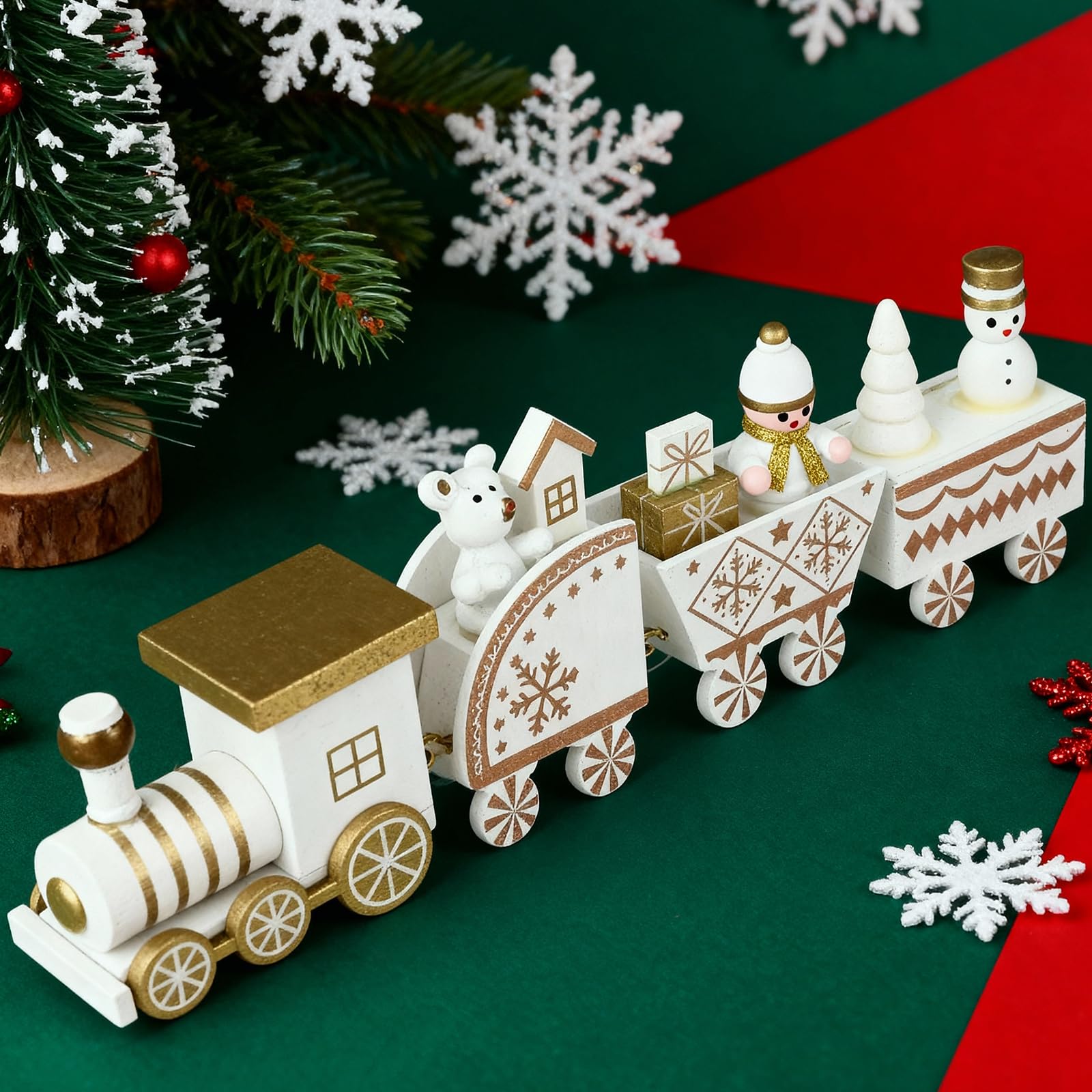木製の汽車のクリスマス置物