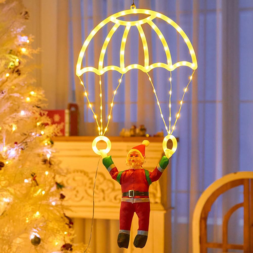 【サンタさんのパラシュート】サンタさんとイルミネーションを組み合わせ、人気のクリスマス イルミネーションになる!!
