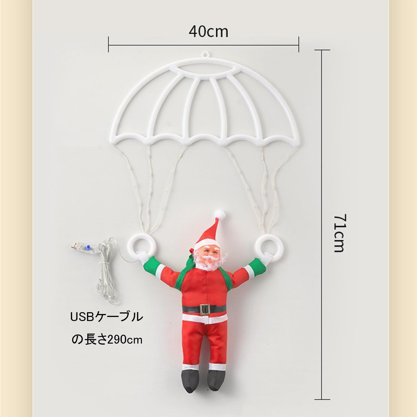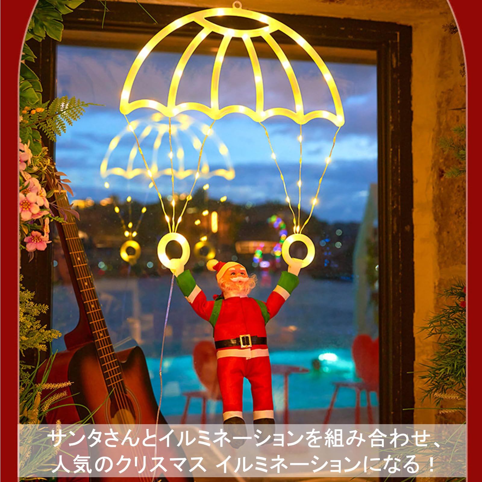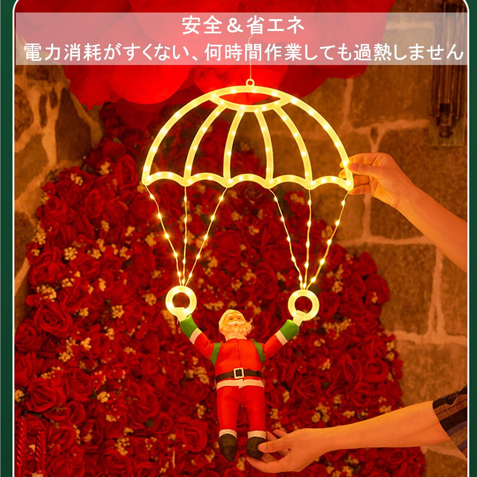 【商品仕様】サイズ:71cmx40cm【セット内容】パラシュートライト *1、サンタさん*1、リモコン*1。
