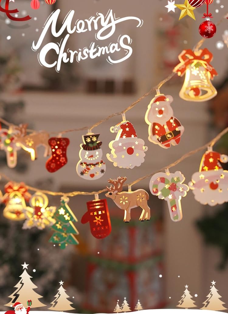 【人気】クリスマス イルミネーションライト フェアリーライト LED ストリングライト 電池式 暖光 クリスマス飾り クリスマスツリー ライト サンタクロース 雪だるま パーティー キャンプ ガーデン ベランダ 窓アウトドア 装飾電飾 (3m 20電球、電池式)