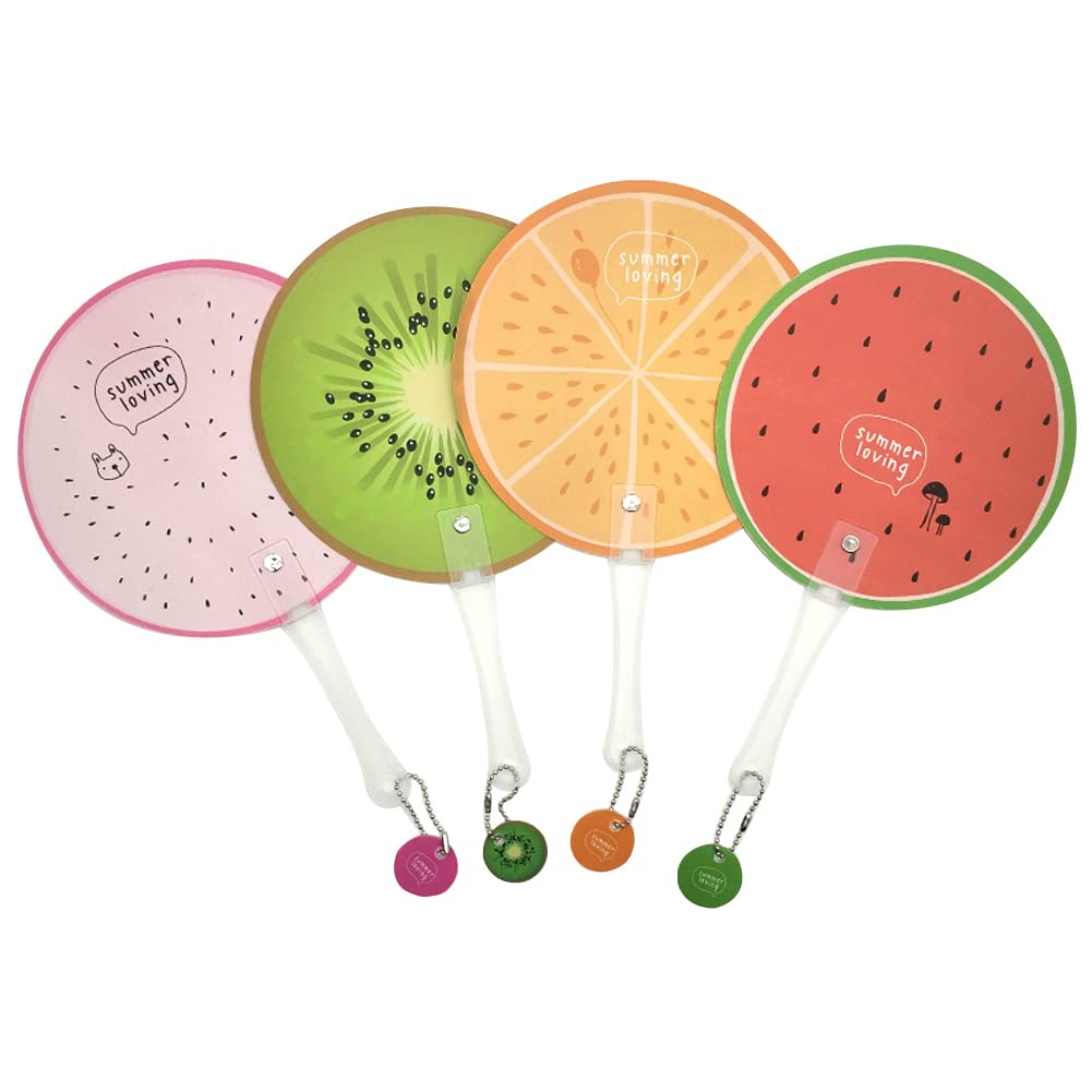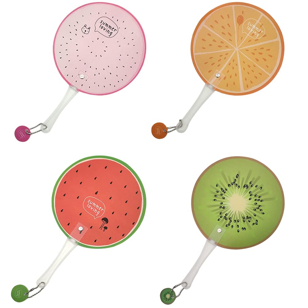 可愛いうちわ 4種類入り 頑丈耐久 団扇 扇子 夏 涼 軽量 防水 便利 かわいい お祭り/運動会/花火大会/旅行/外出/ピクニック/パーティー に適合 (果物デザイン,4種セット)