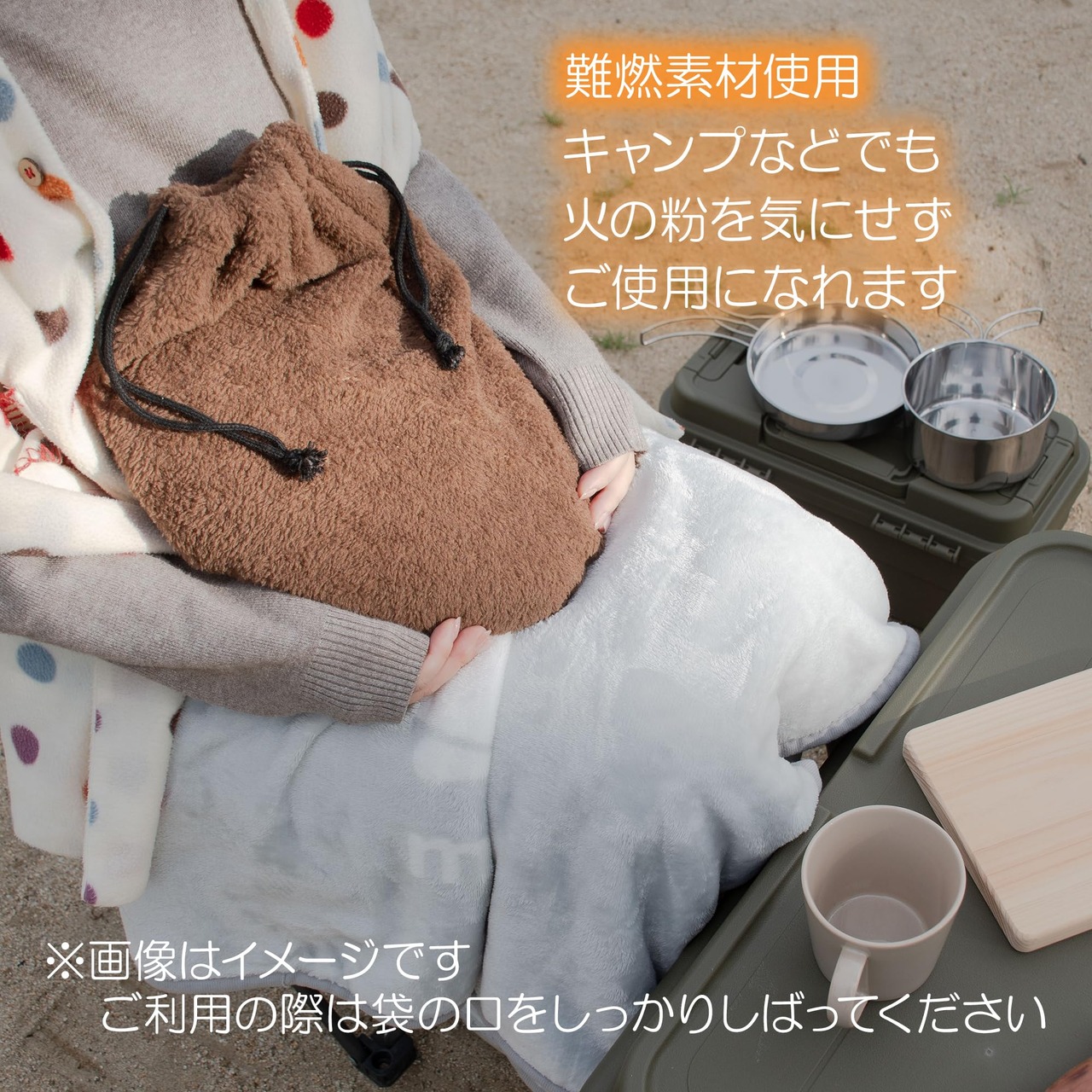 燃えにくい生地なのでキャンプでの使用にもおすすめです。