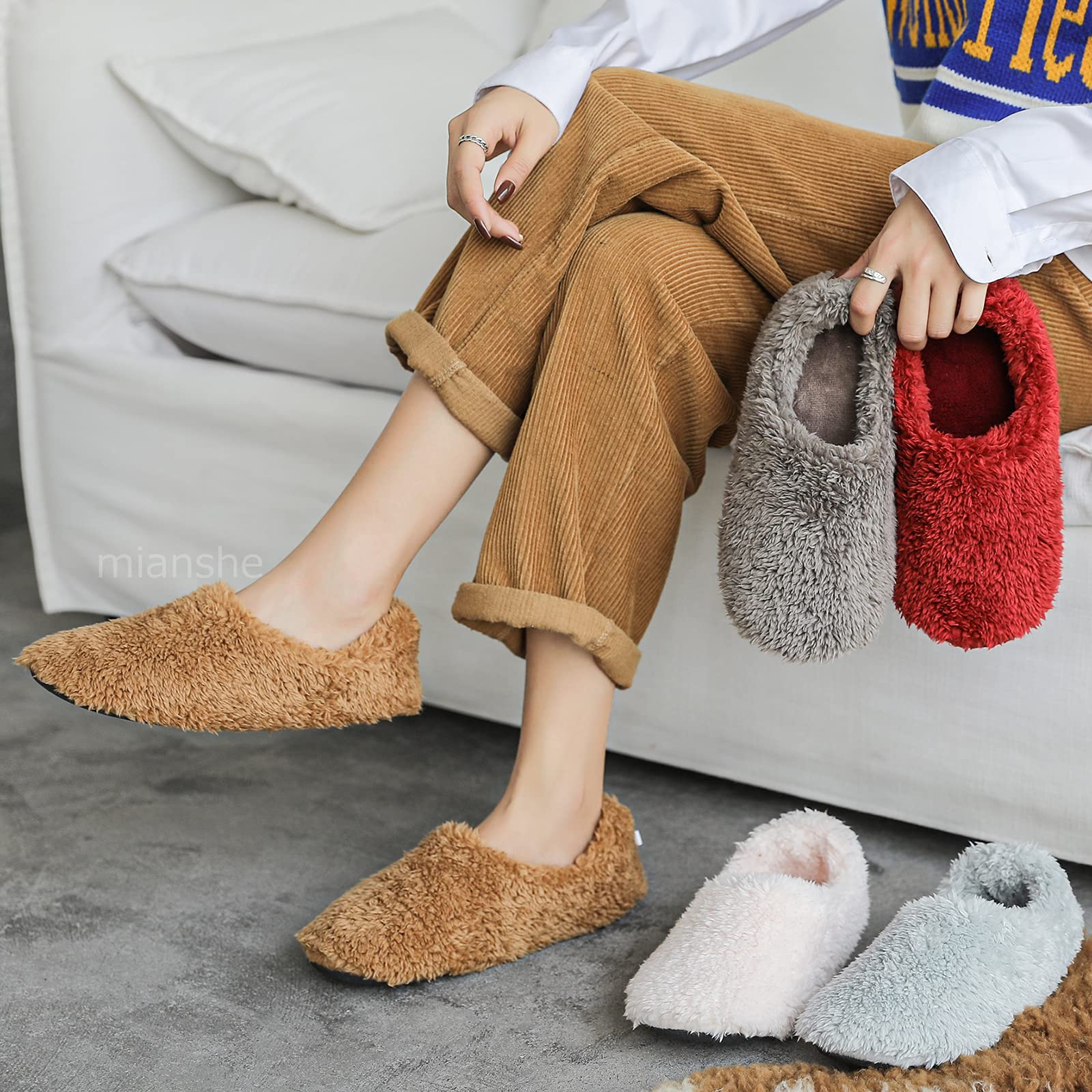 【人気】[mianshe] あったか ルームシューズ スリッパ かかと付き 男女兼用 もこもこ 軽量 洗える