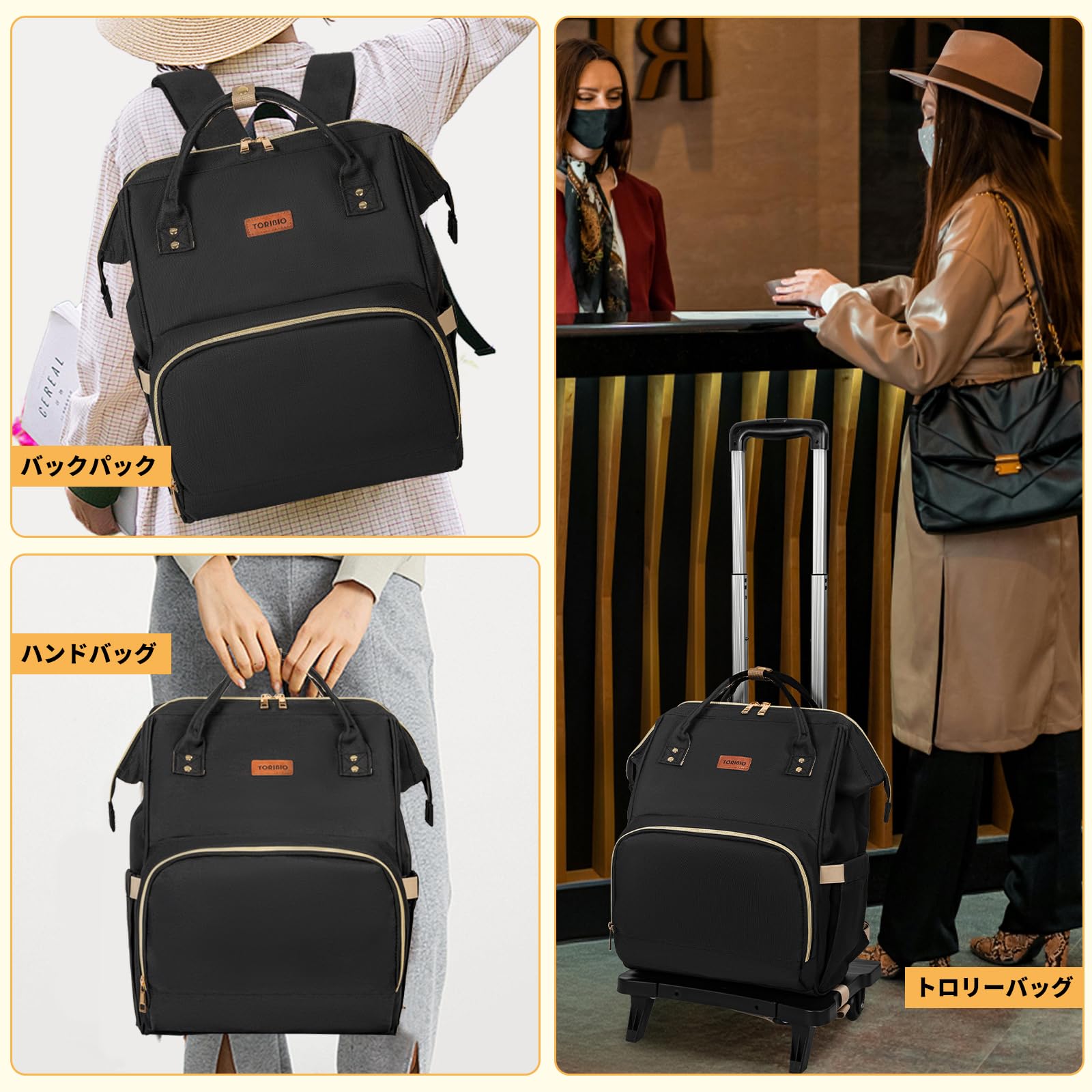 TORIBIO ショッピングキャリー キャリーバッグ 折り畳み式 軽量 機内持ち込み 便利 コンパクト 横押し 取り外し可能 2WAY 組み立て 買い物かご カート 2輪 (ブラック)