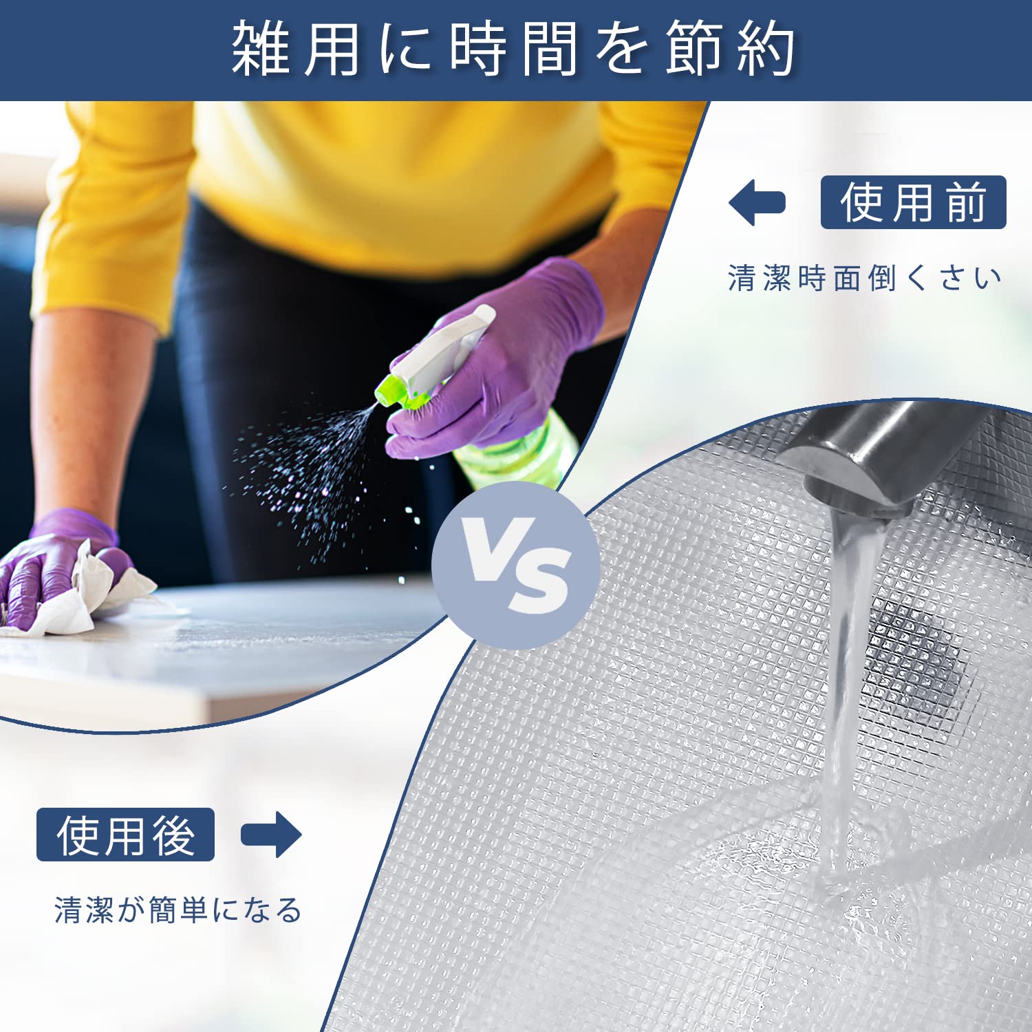 【防汚防油&清潔簡単】キッチンシートはホコリや油で汚れているときは、中性洗剤や湿った布やスポンジで簡単に汚れを拭き取り、素早く乾きます。汚れにくい上に洗いやすいです、常に清潔に使うことができます。洗って繰り返し使用が可能です。材質は柔軟なので、収納する時、巻けばよい、場所を占めません。