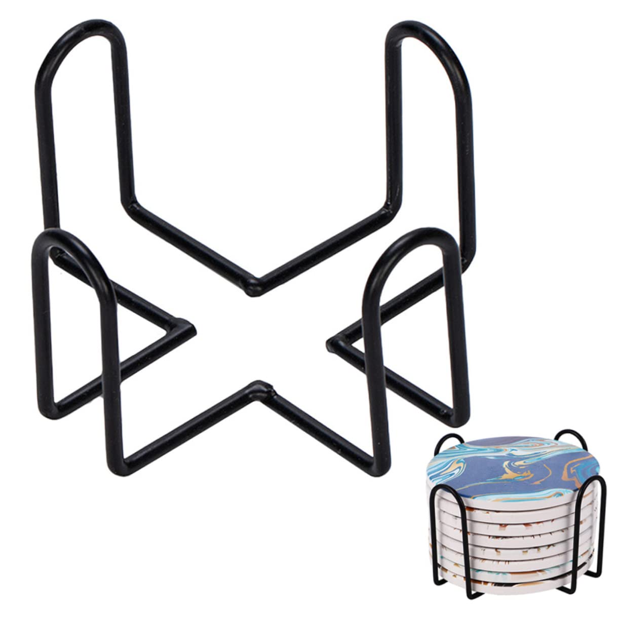 アイアンコースターホルダー コースター収納ラック ブラック 収納スタンド キッチン用カップマットオーガナイザー 11.4×11.4×5.2Cm 家庭用デスクトップ整理ラック