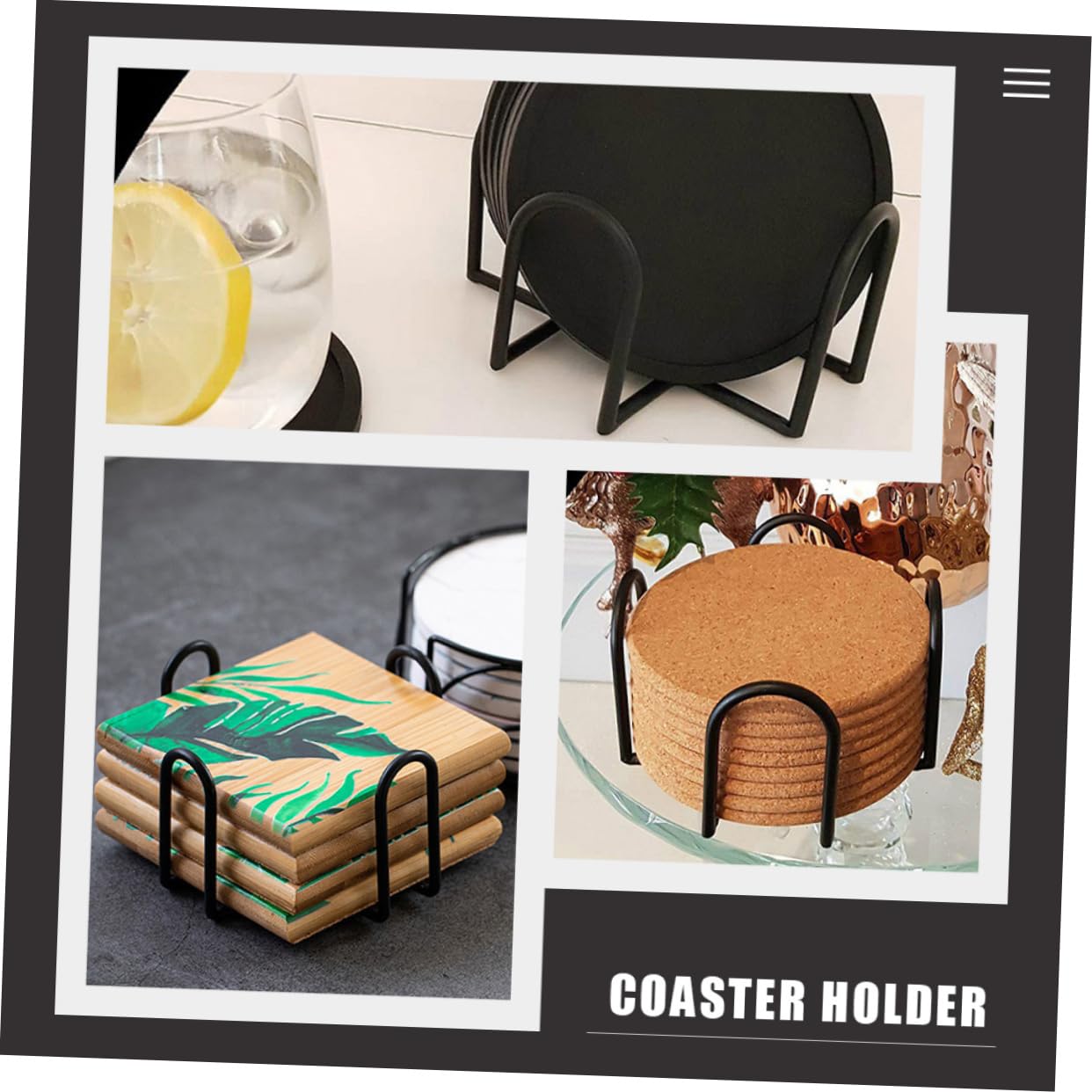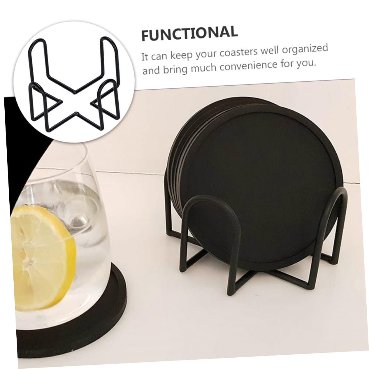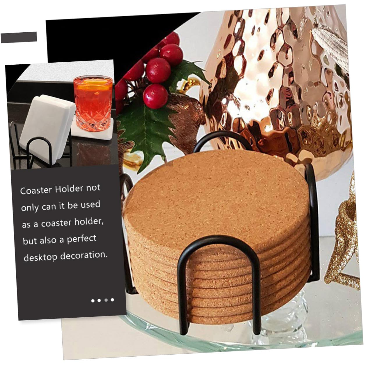 アイアンコースターホルダーの多機能性: このアイアンコースタースタンドはカップパッドやコースターを整理するだけでなく、デスクトップやキッチンの装飾としても活用できます。おしゃれなデザインで毎日の使用に適しています。