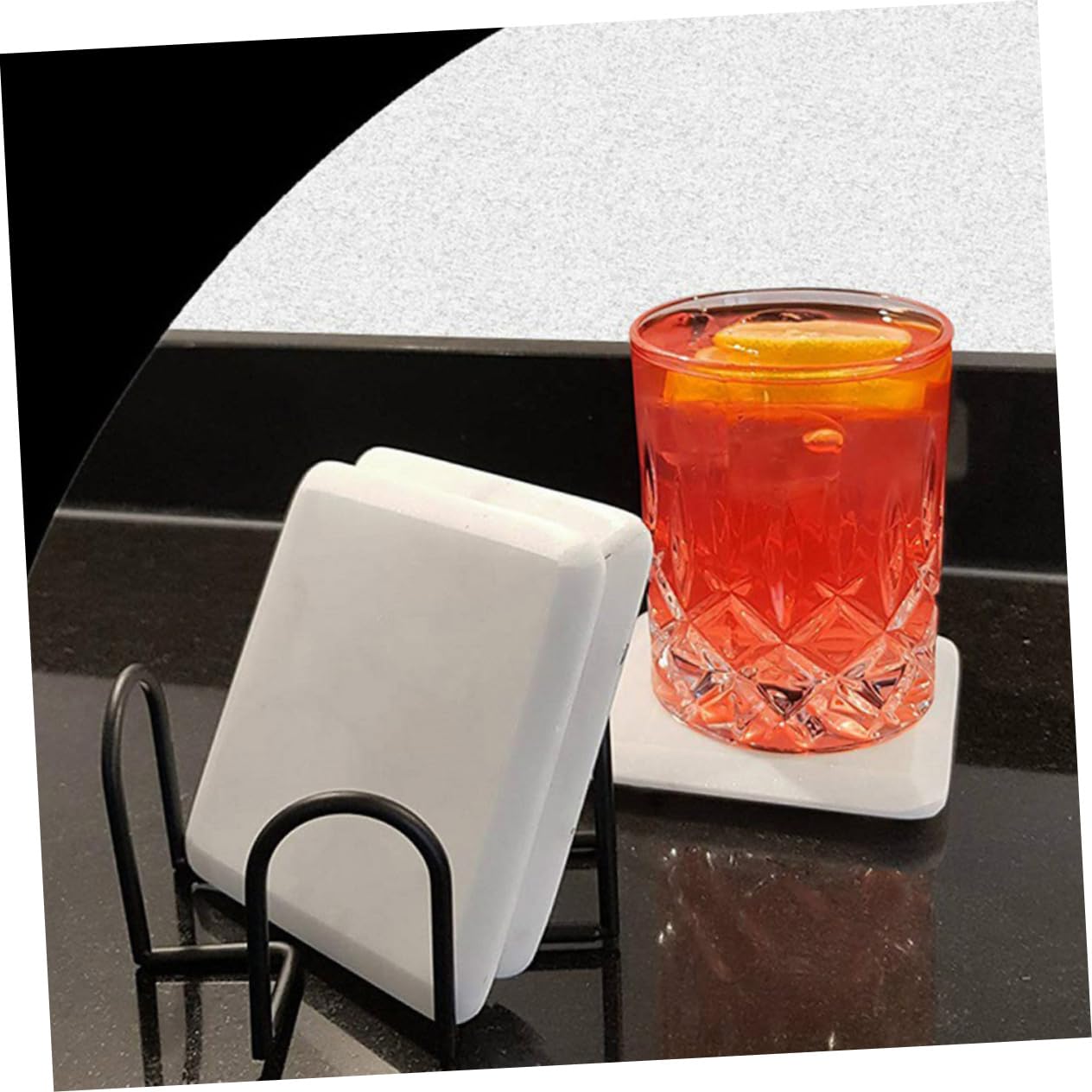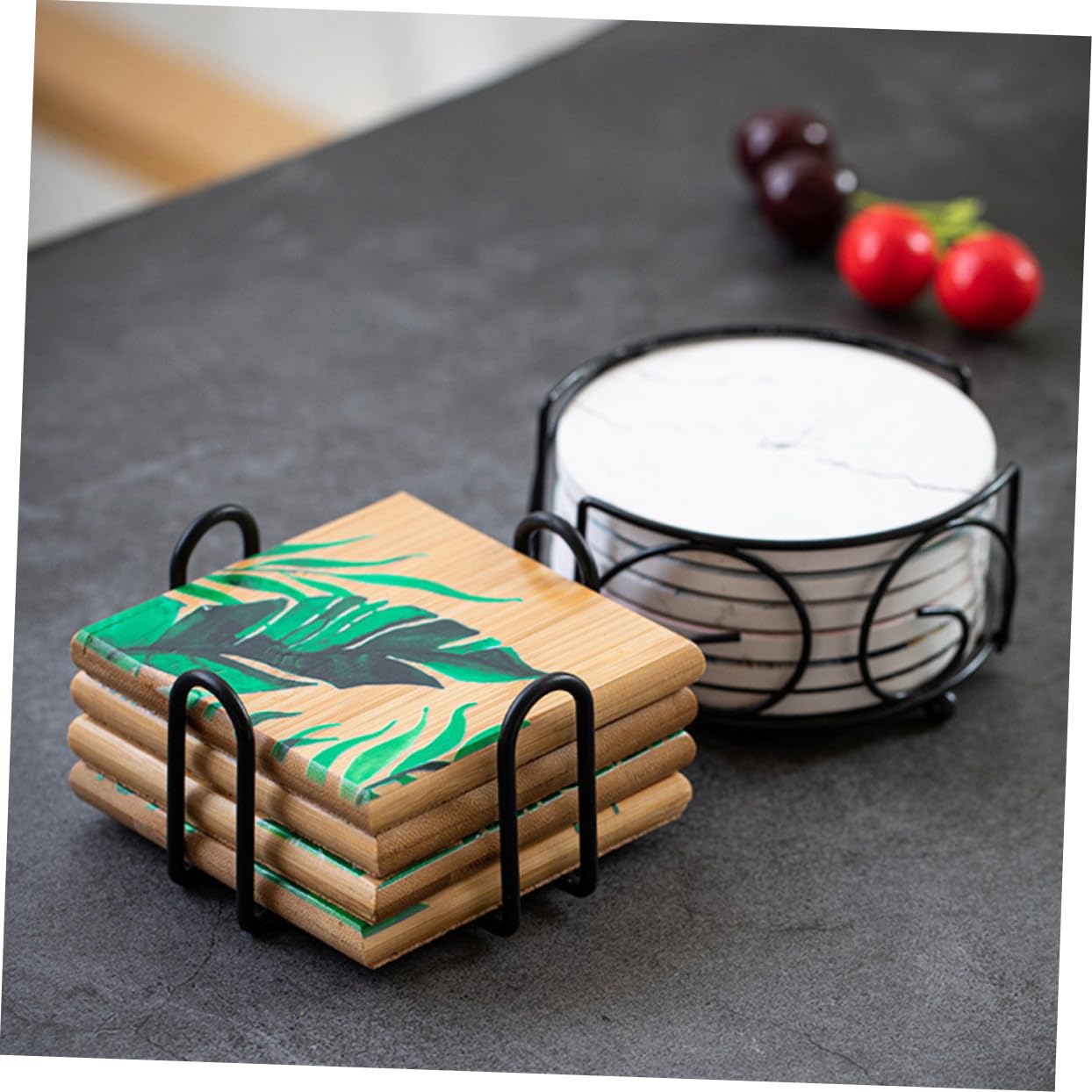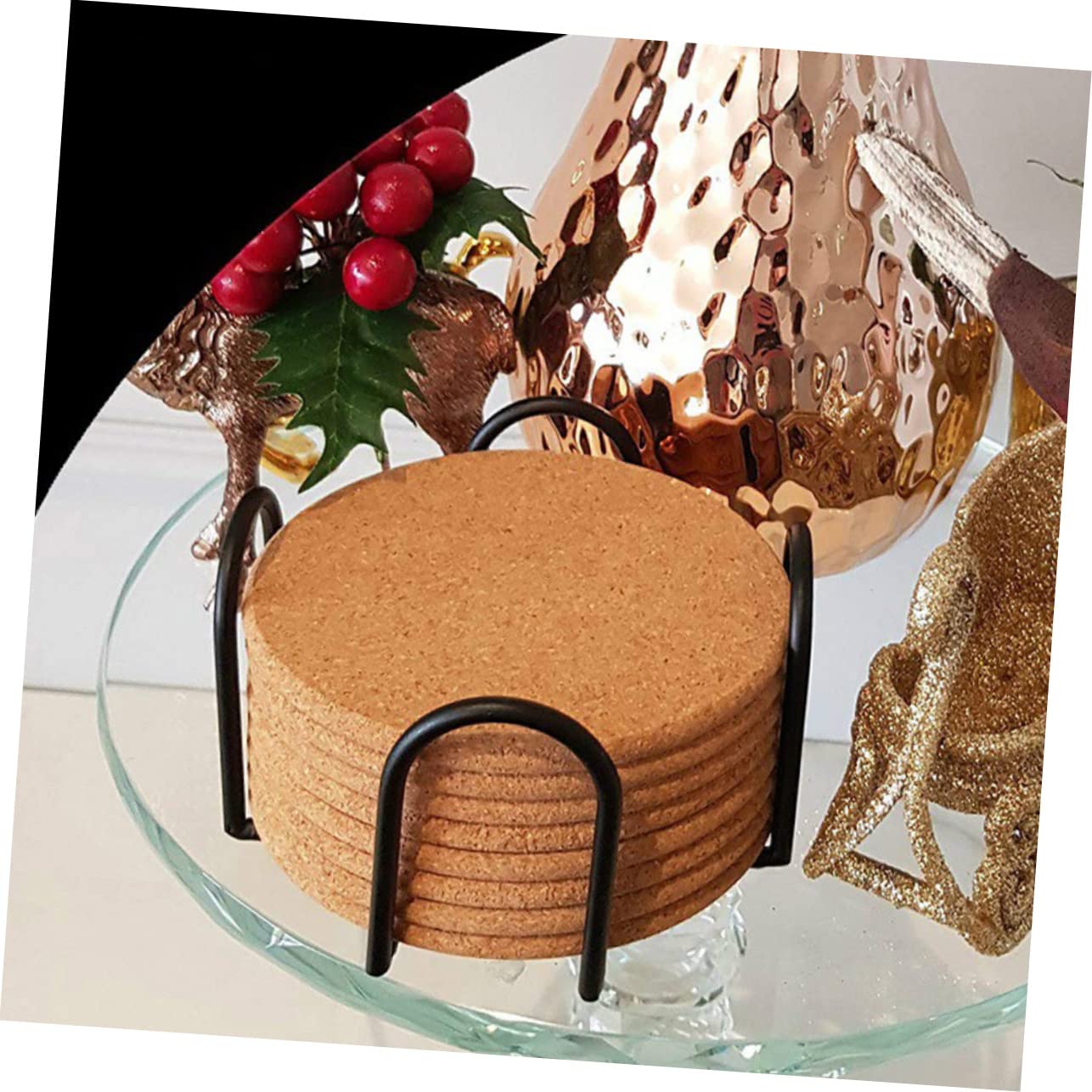 アイアンコースターホルダーの多機能性: このアイアンコースタースタンドはカップパッドやコースターを整理するだけでなく、デスクトップやキッチンの装飾としても活用できます。おしゃれなデザインで毎日の使用に適しています。