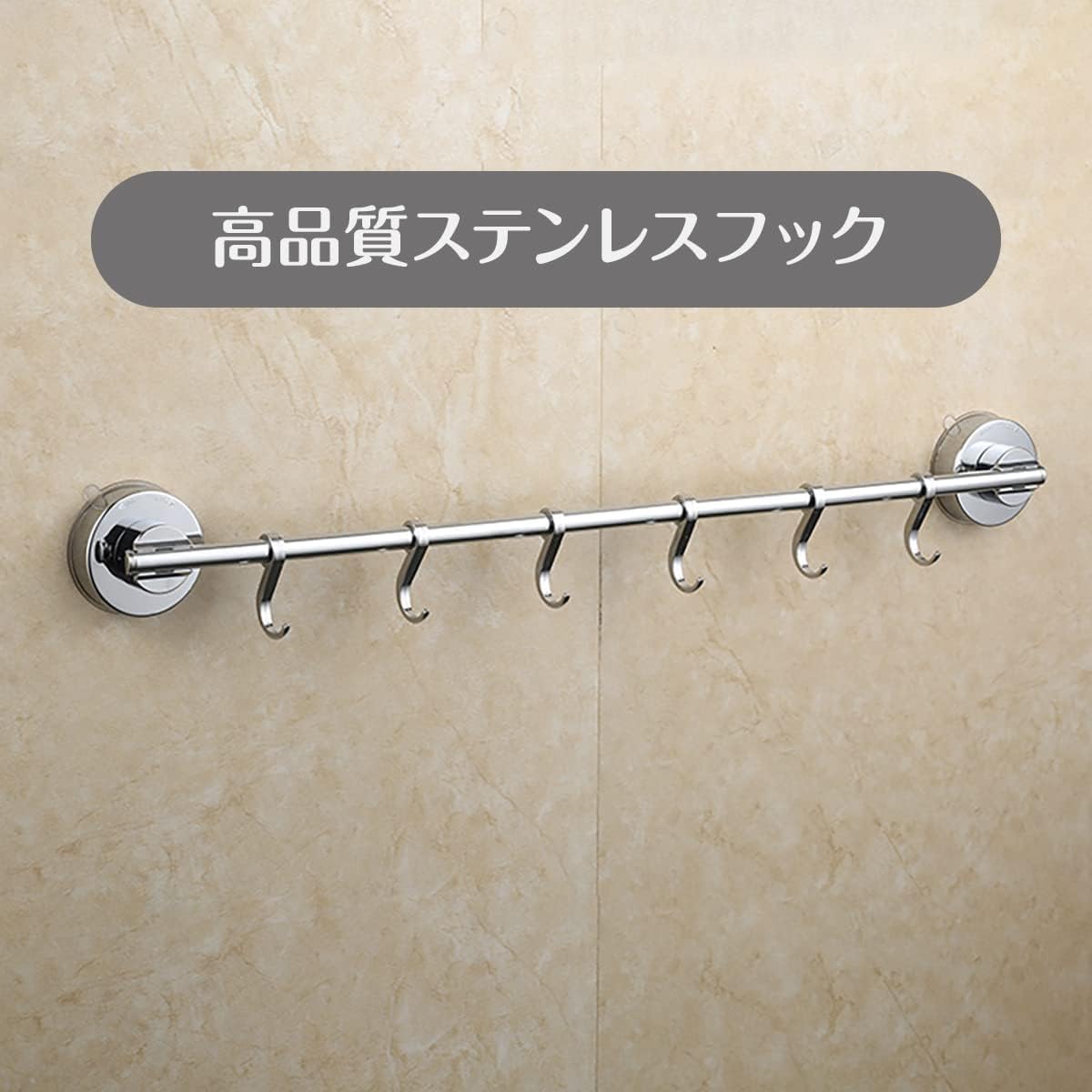 【新着】キッチン ツールフック 台所フック バスルームフック ステンレス スチール 超強力吸盤 フック 6個付き