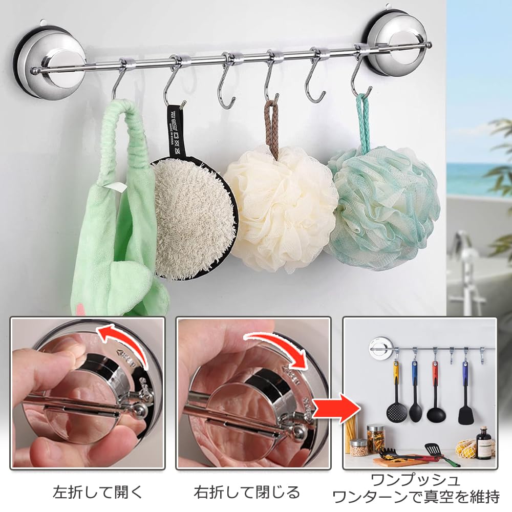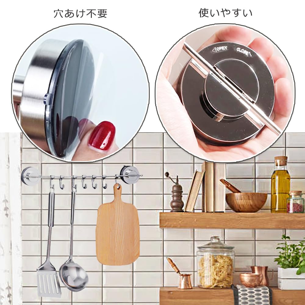 【数量限】キッチンツールフック キッチン 吸盤 ステンレススチール、超強力吸盤 台所用フック 防水防錆 壁掛けフック 調理器具 バスルーム キッチン収納 台所 収納 軽量 キッチンツール