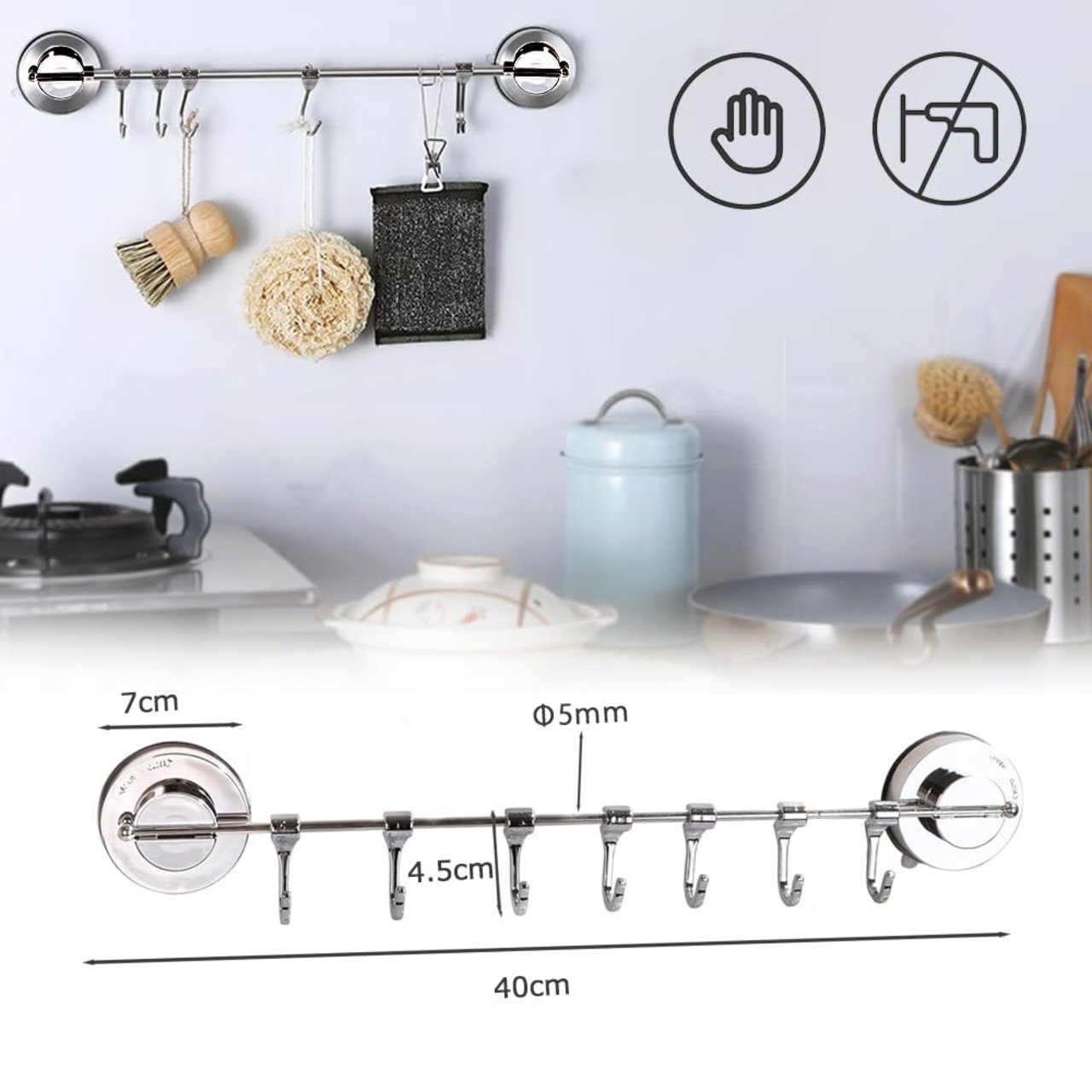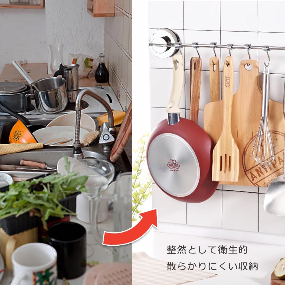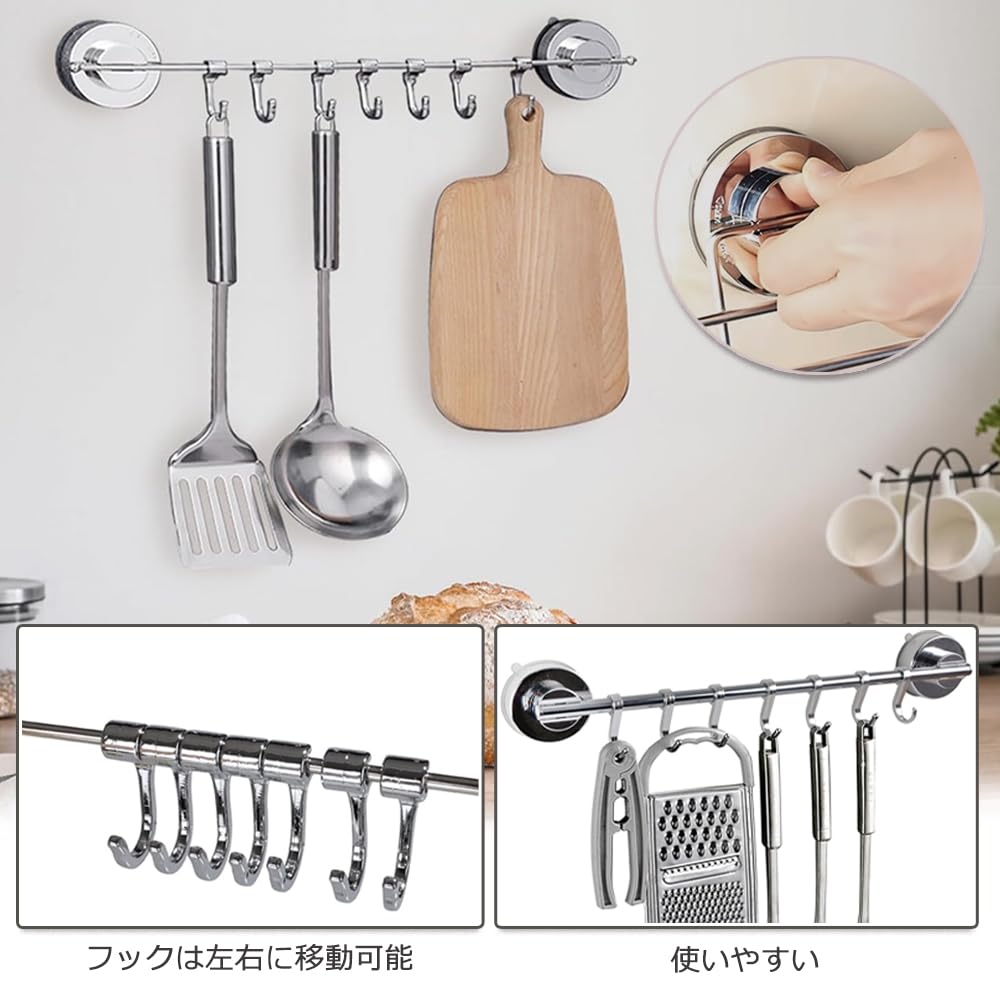 【可動式フック 】お玉などを綺麗に収納することができます、ふきん、バスタオル、衣類などをかけるのにも使えます。