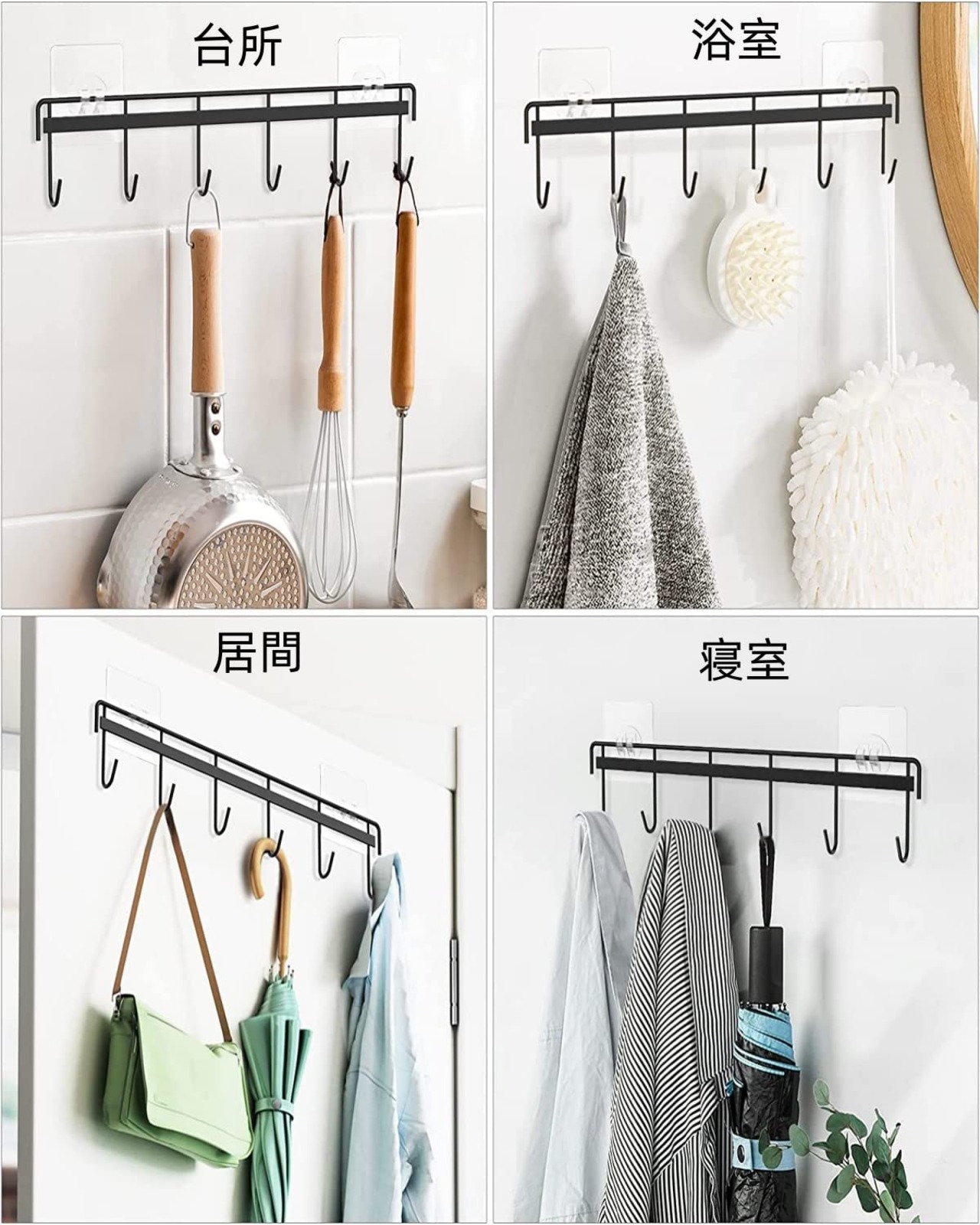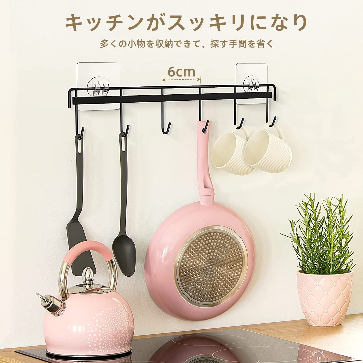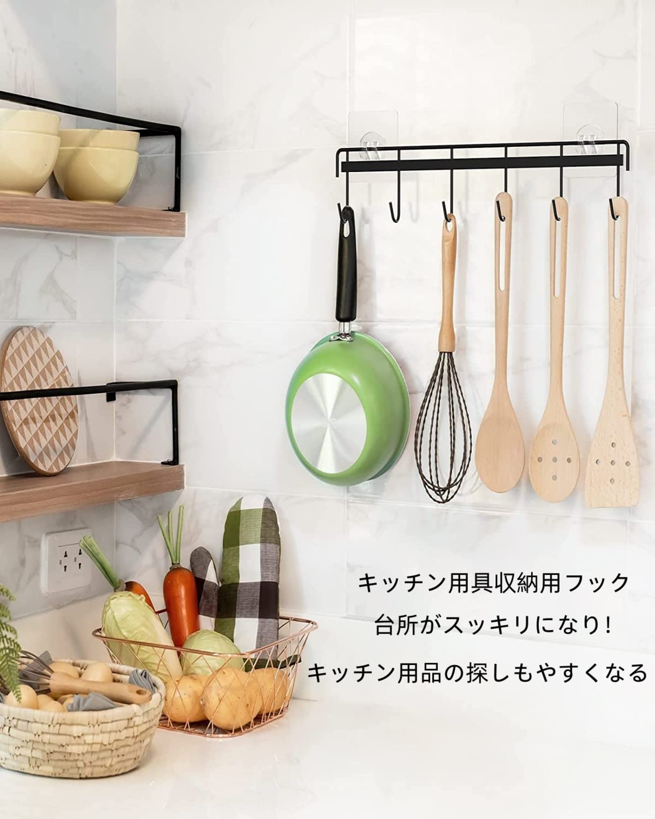 【強力固定】フックは強力なテープ付きで、耐荷重は約8kgまでも大丈夫です。以上の通りにフックを取り付ければ、落ちるのことを心配しなくていいです。キッチンツールフック付きのフックはしっかりでいくら物をぶら下げても落ちません。