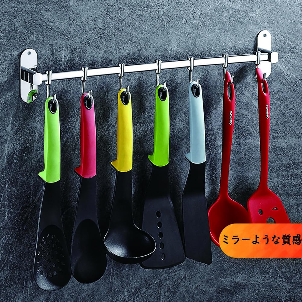 【数量限】キッチンツールフック 壁掛け式 強力粘着固定/ビス固定 防水 50cm/59.5cm/40.5cm 7個/8個/6個フック付き ステンレス 調理器具 収納 お風呂 シャワーラック タオルハンガー 台所ラック