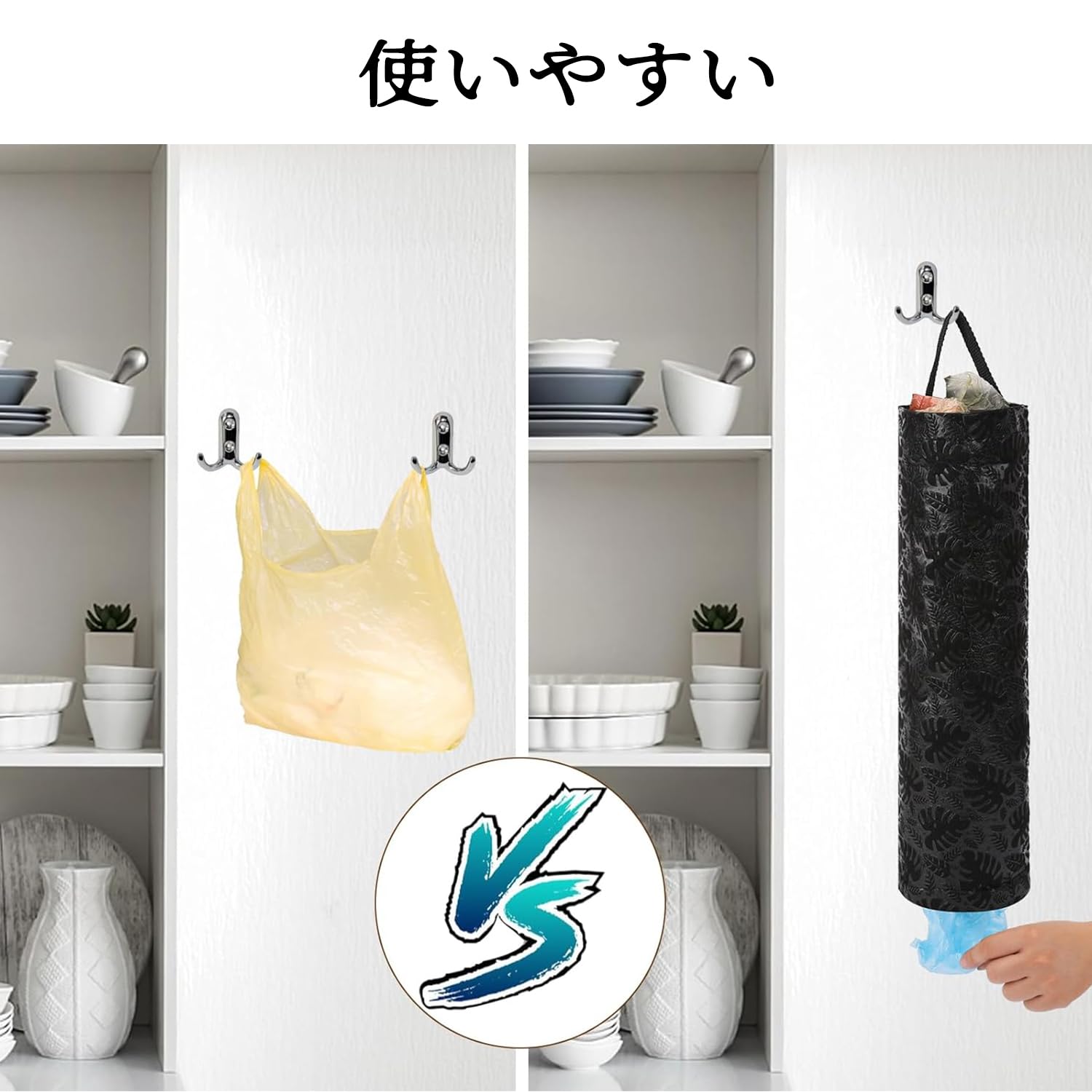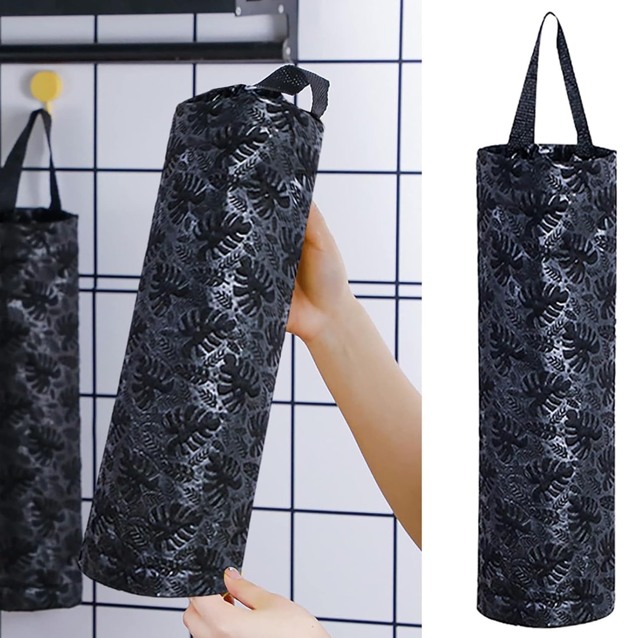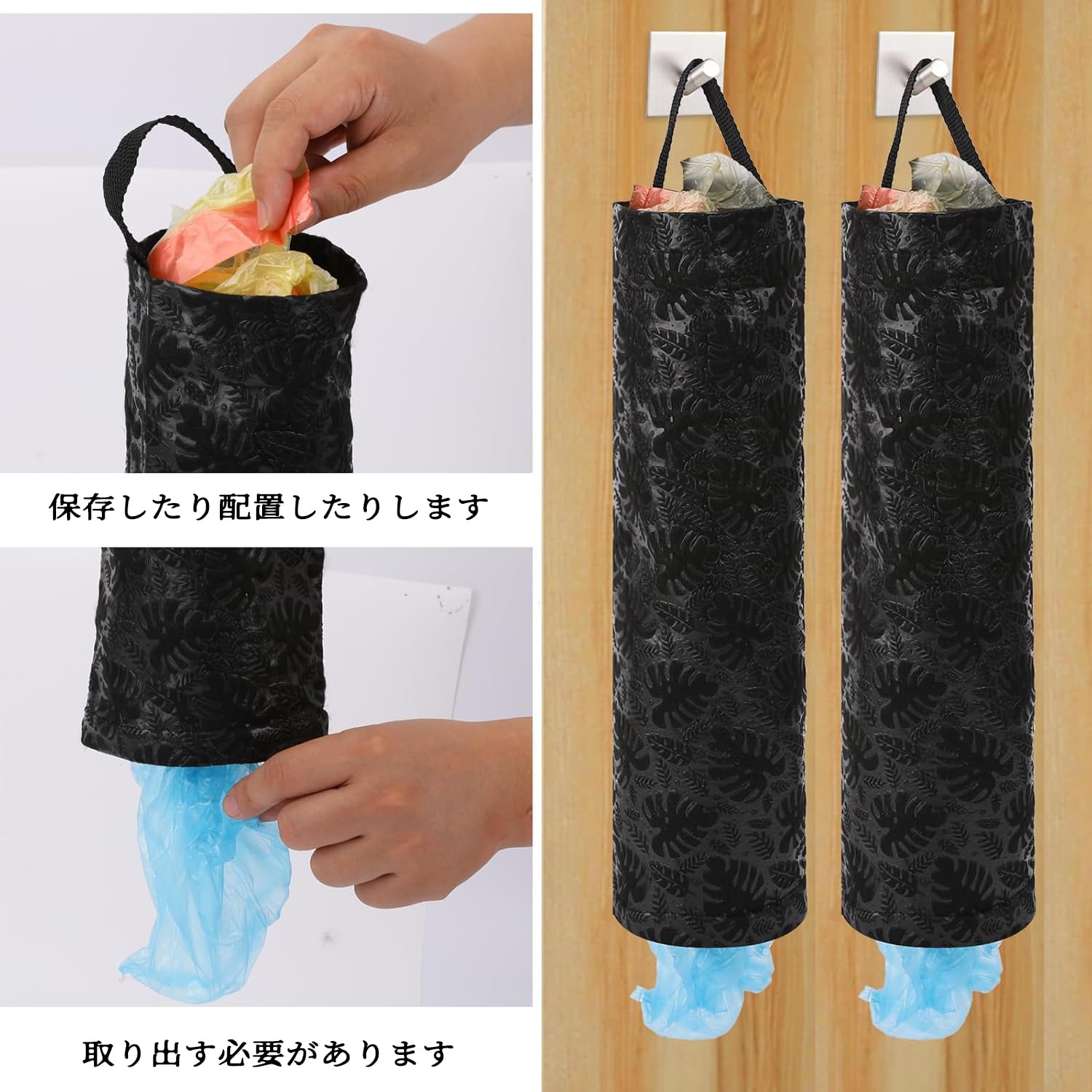 【商品仕様】長さ:44 cm、ロープを含む、幅:11 cm。ブラック。2個セット。収納するために折りたたむことができ、キッチンスペースを占有することなく、多くのビニール袋を収納し、キッチンを清潔に保つのに十分。