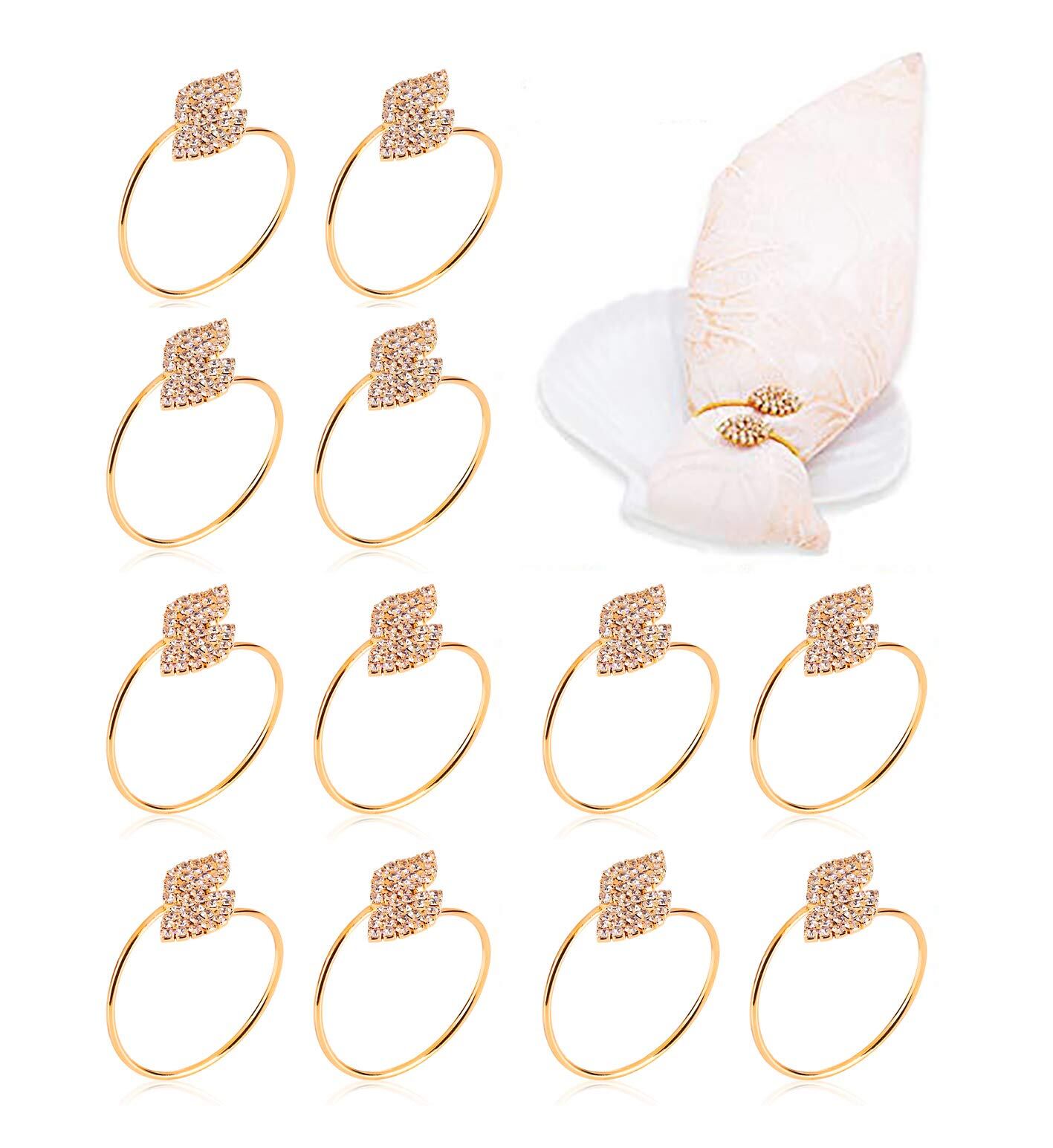 ナプキンリング、結婚披露宴のディナーテーブルデコレーション用12個のメタルナプキンバックルホルダー(リーフゴールド)