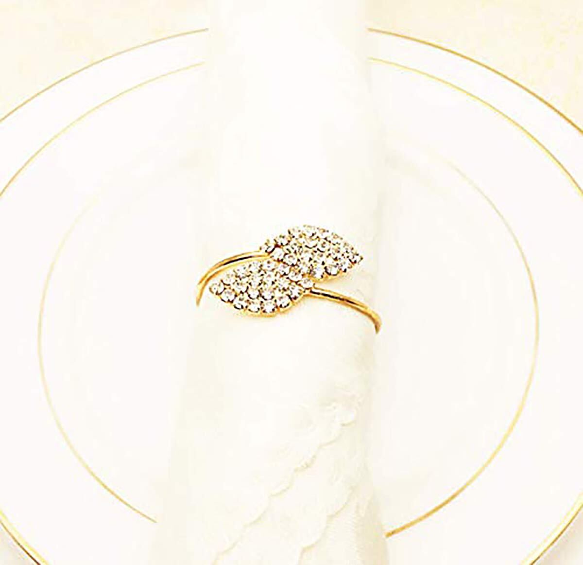 【付属パッケージ】:12 *ナプキンリング、ナプキンなし/葉のサイズ-1.3x0.91インチ(3.3x2.3cm)/内径-約1.6インチ(4cm)/色:ゴールド/素材:金属合金。非常に耐久性のあるナプキンリング。