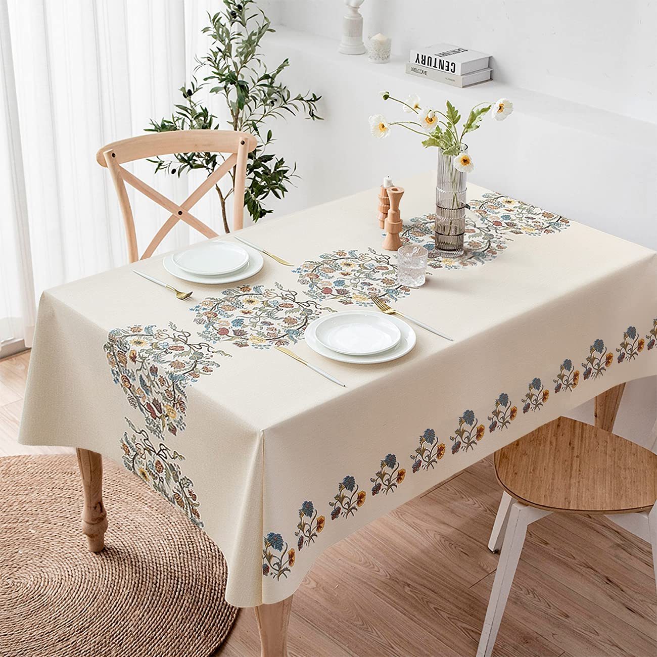 テーブルクロス ビニール おしゃれ テーブルカバー 撥水 ?布 正方形 長方形 北欧 汚れ防止 防水 防油 耐熱 pvc製 テーブルマット テーブルランナー カーキー 刺? 140×180CM