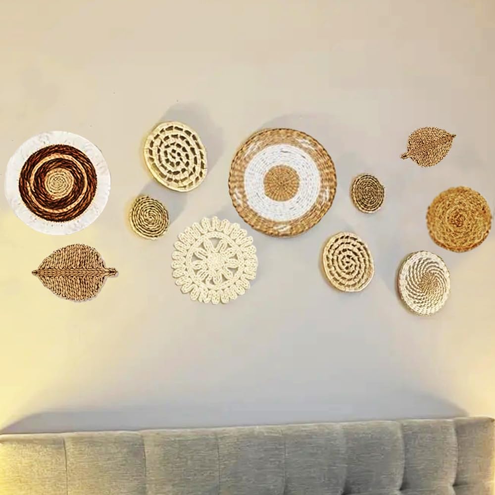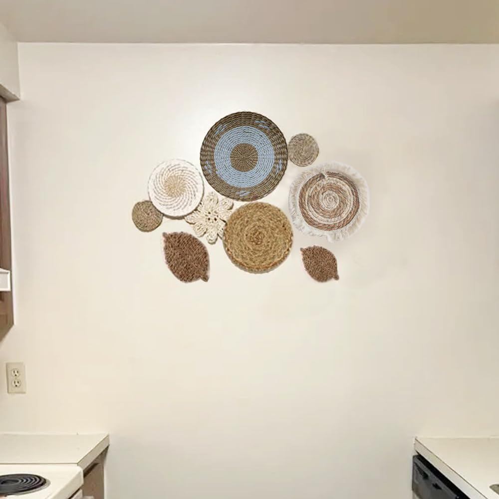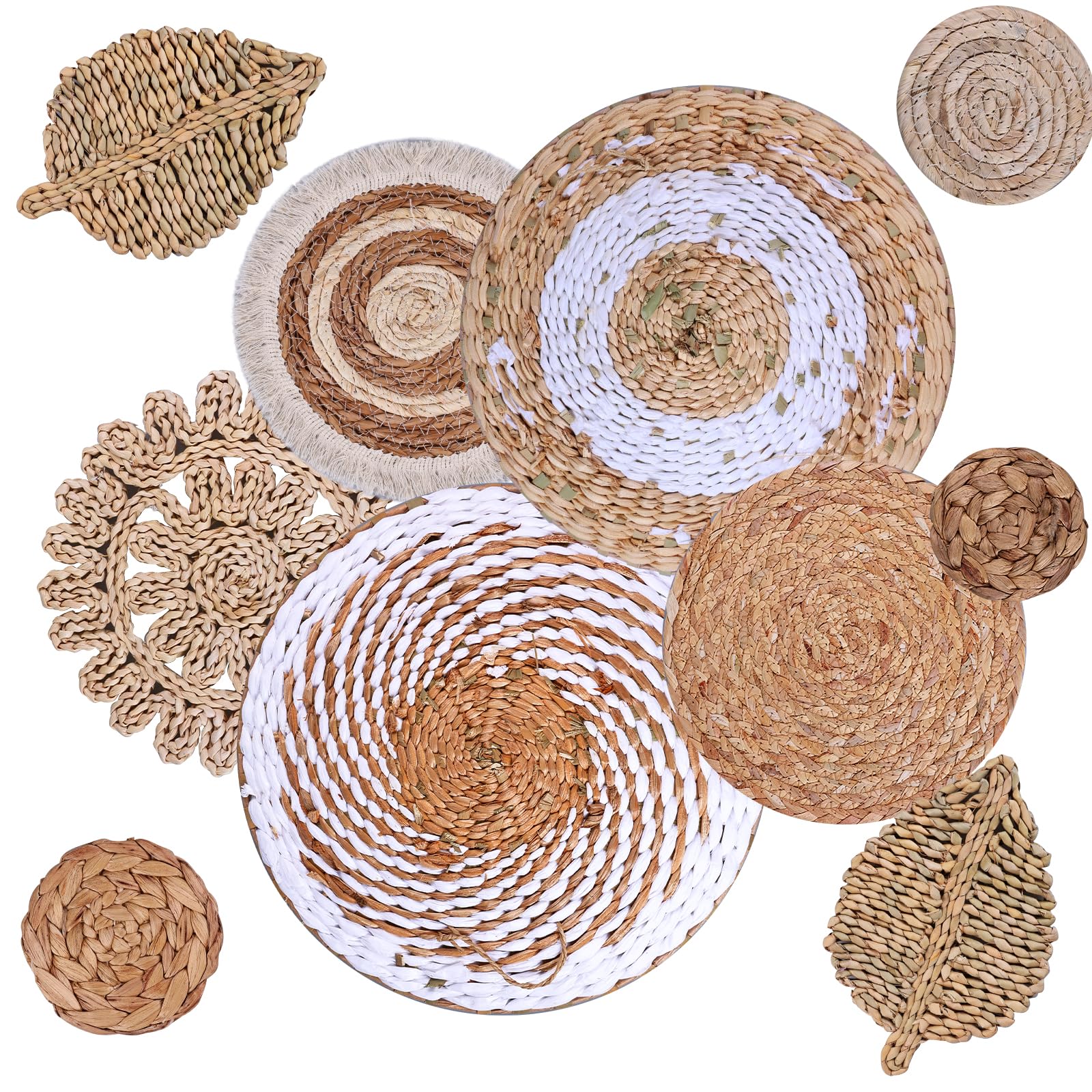 【新着】ボヘミアンウォールバスケット装飾、丸い素朴な織りの装飾、手作りの籐の壁掛けバスケットセット、ベッドルーム、リビングルーム、ダイニングテーブルのためのシーグラスの壁掛け(10個セット) | GIGATERA