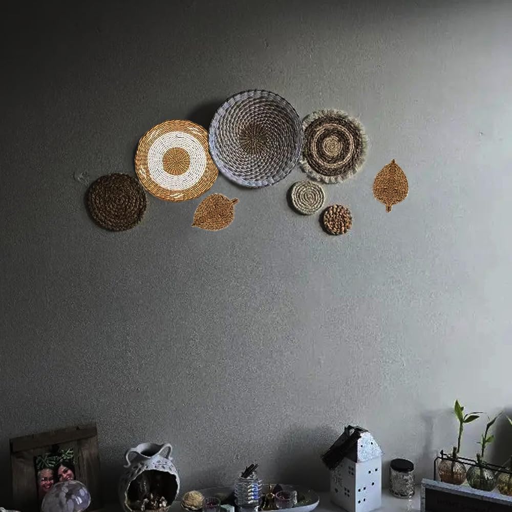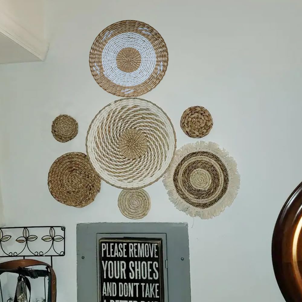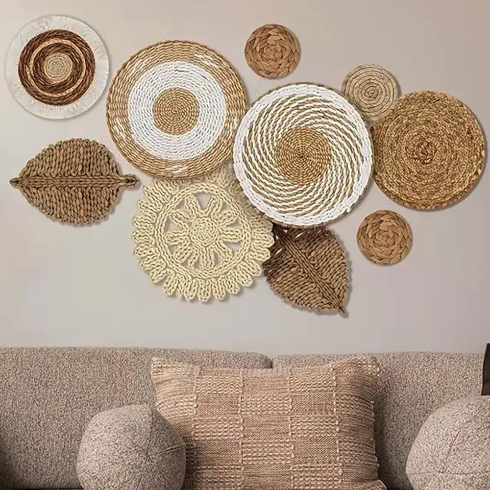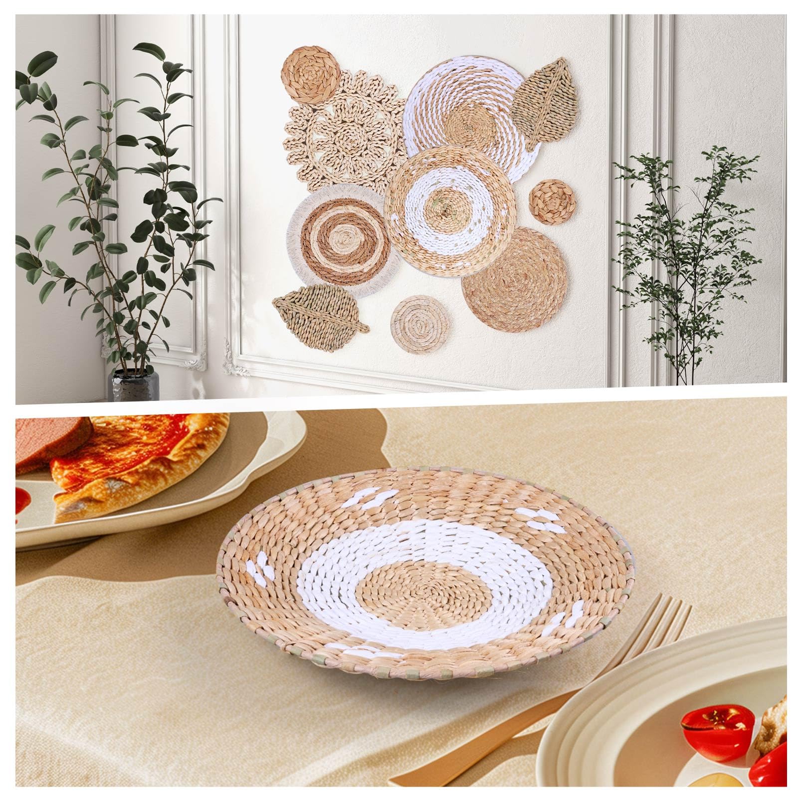 【新着】ボヘミアンウォールバスケット装飾、丸い素朴な織りの装飾、手作りの籐の壁掛けバスケットセット、ベッドルーム、リビングルーム、ダイニングテーブルのためのシーグラスの壁掛け(10個セット) | GIGATERA