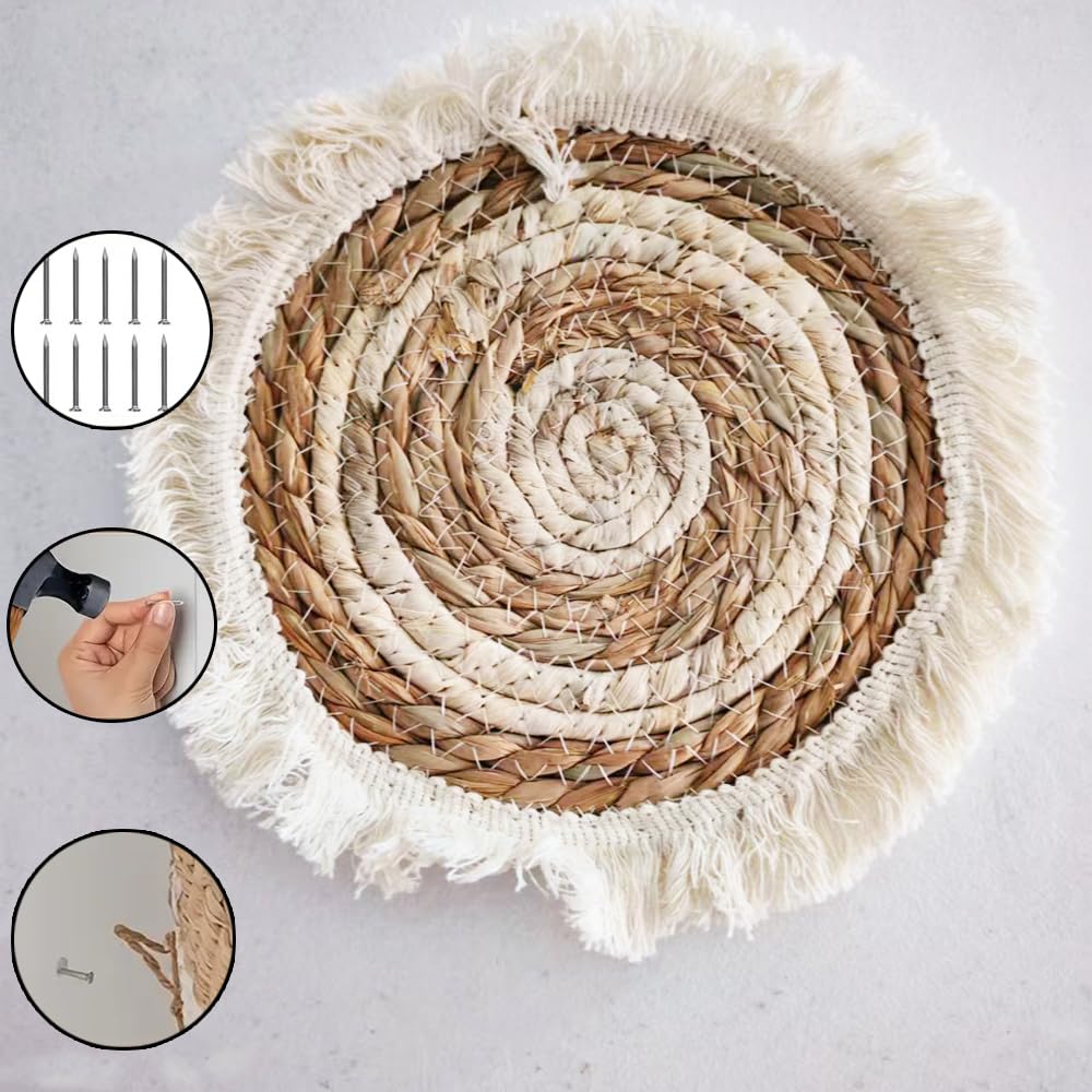 [ボヘミアン風インテリア] この吊り下げ式ウォールバスケットを空間に取り入れると、魅力的なボヘミアンスタイルに。アースカラーのブレンドと組み合わされたハンドメイドの魅力が、ほとんどのお部屋に落ち着きのある穏やかな美的感覚をプラスします!
