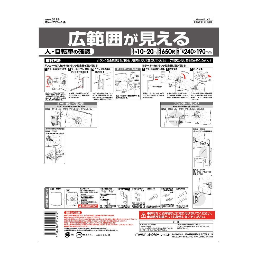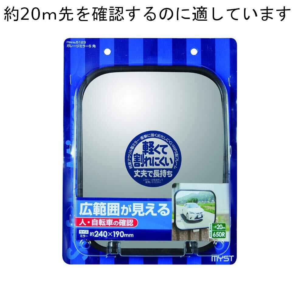 【在庫処分】MYST(マイスト) ガレージミラー 近・中距離用(~20mまで) 四角形 黒色 約240×190mm (5123)