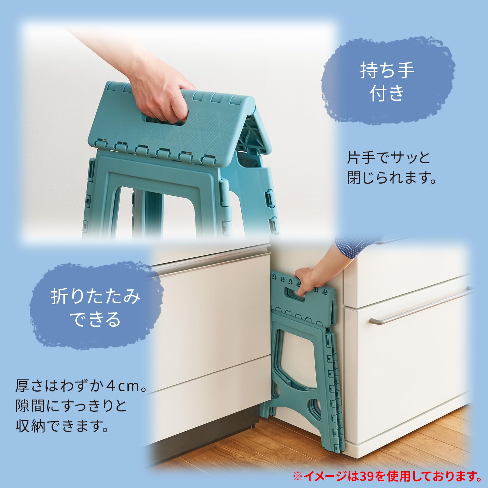 【特価】天馬(Tenma) 隙間に収納できる折り畳み踏み台 フォールディングステップ 室内用 脚立 軽くて持ち手付きのステップ 頑丈【色 ラムネブルー】【耐荷重100kg】【幅38×奥行30×高さ39cm】 | GIGATERA