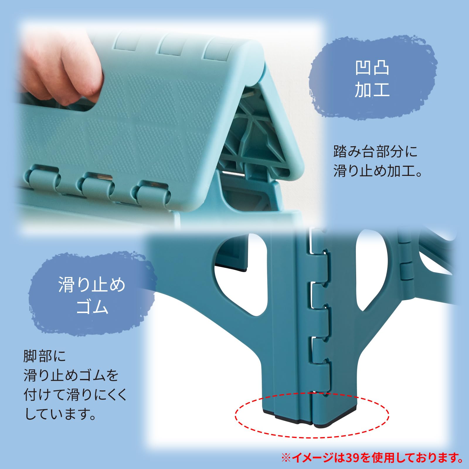 高さ39cm型は1段で足が上がる高さの上限に設計しました。