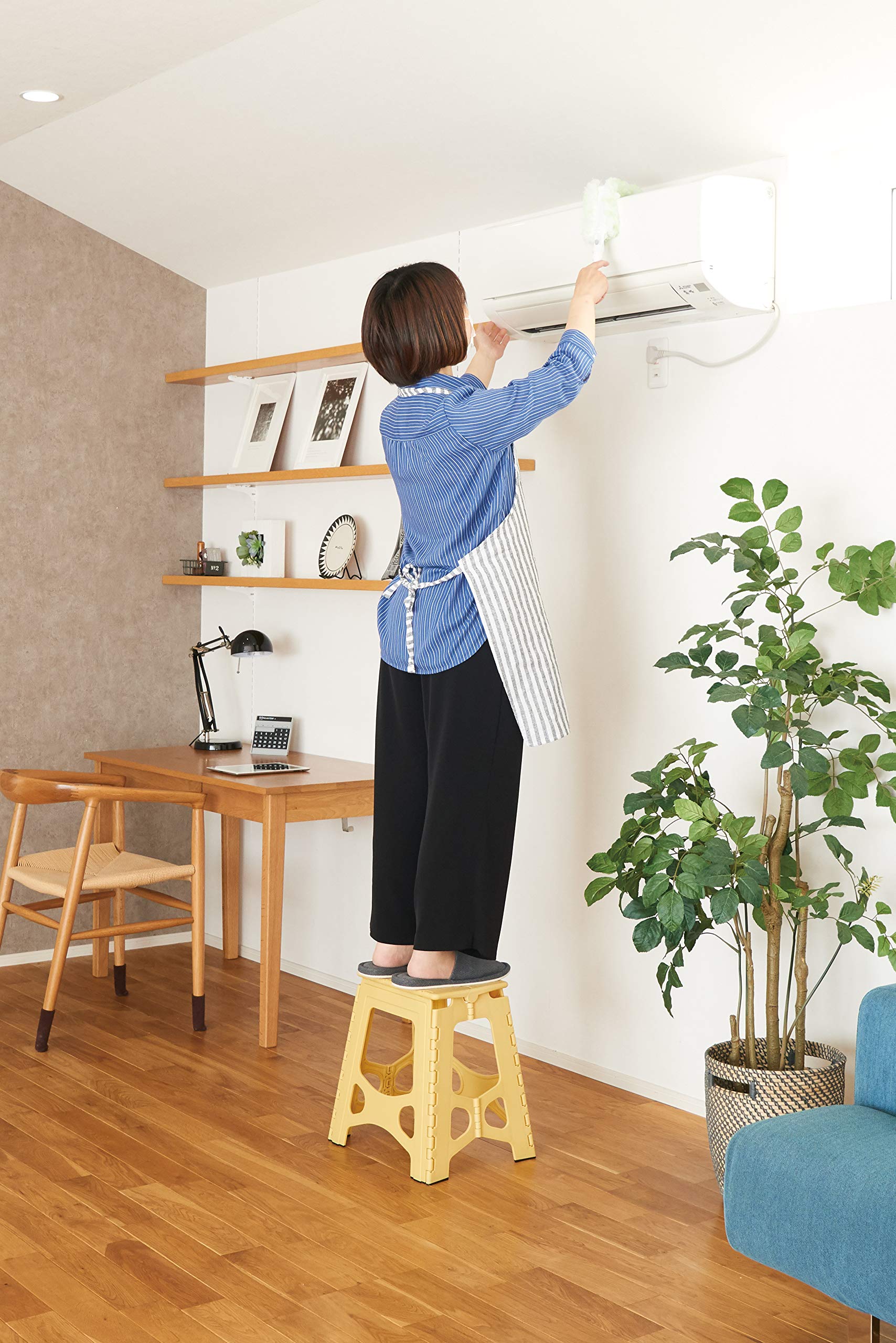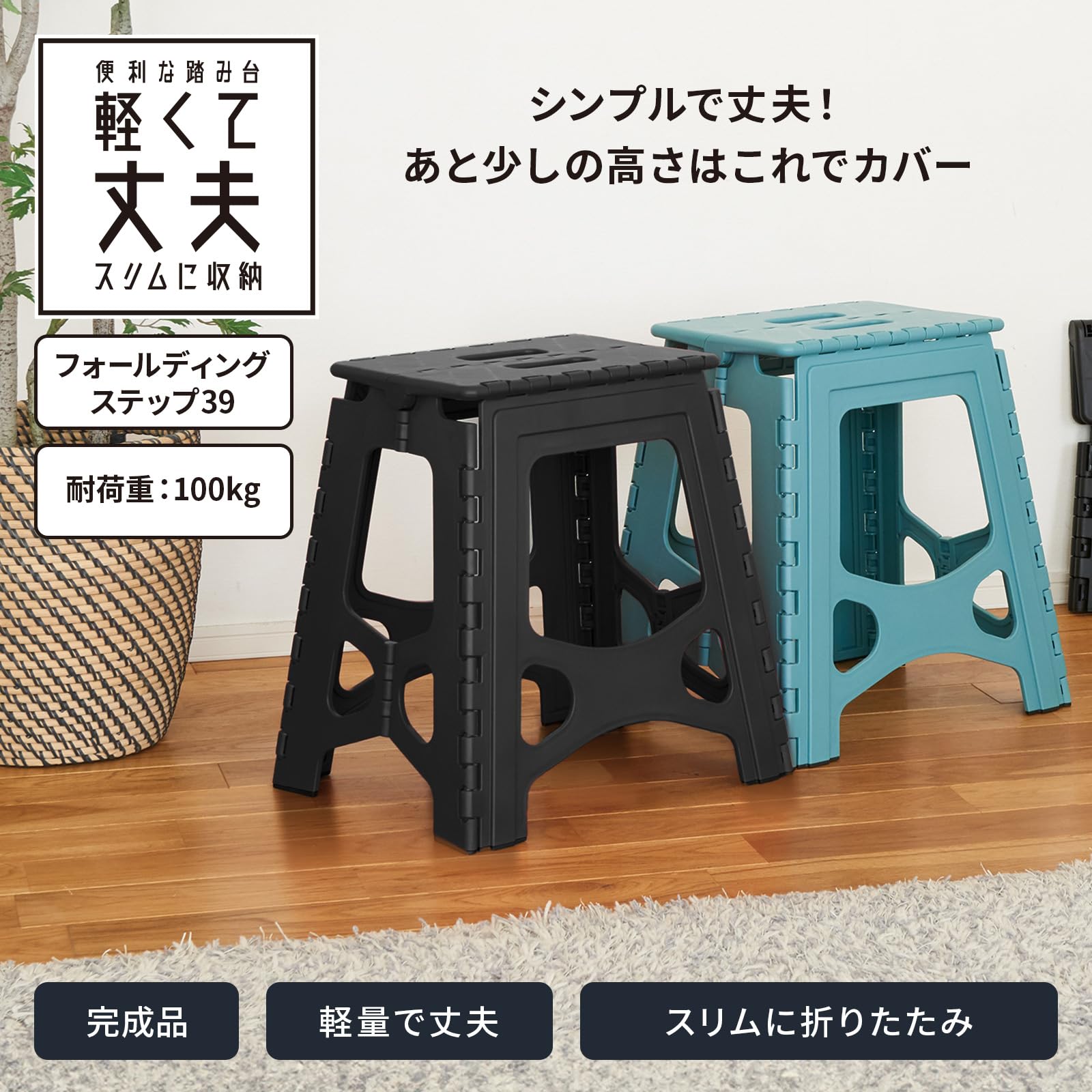 ●軽くて丈夫、スリムに収納できます。●踏み台の表面には凹凸加工を施し、脚部には滑り止めゴムを付けて滑りにくくしています。●上部には持ち手が付いているので、移動させる際も大変運びやすいデザインとなっています。●使用しない時はコンパクトに折りたたむ事が出来ます。
