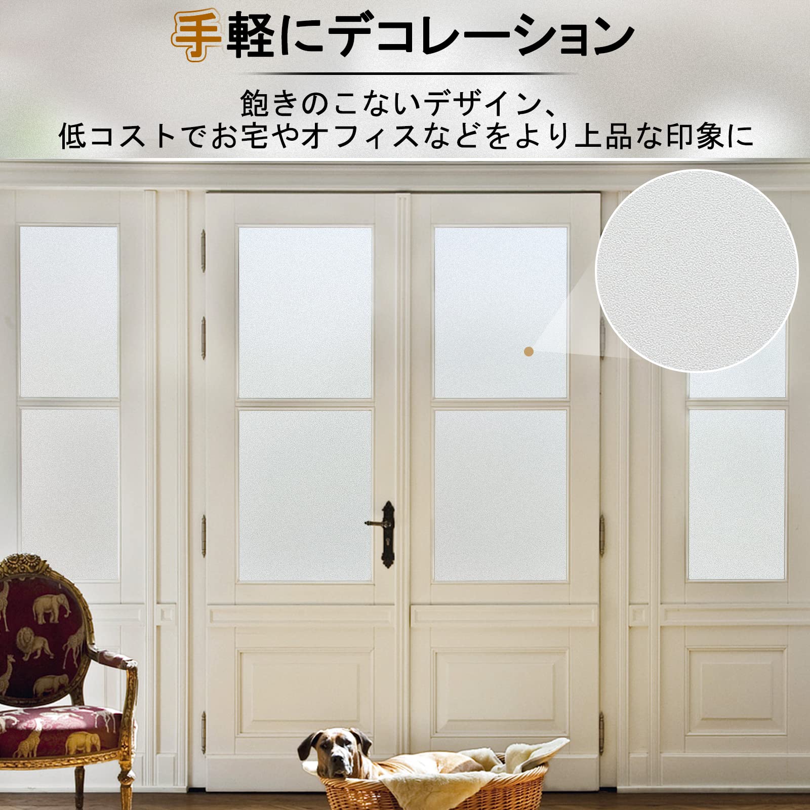 貼り付け簡単・残り物なし・賃貸最適:こちらのすりガラスシートは静電気吸着なので接着剤がいりません。何度でも貼り直せ、初心者でも簡単にできます。はがしても残留物もなし、再利用も可能です。レンタルオフィスに最適です。(ほとんどの接着剤に人間の体に有害な化学物質が入っています)