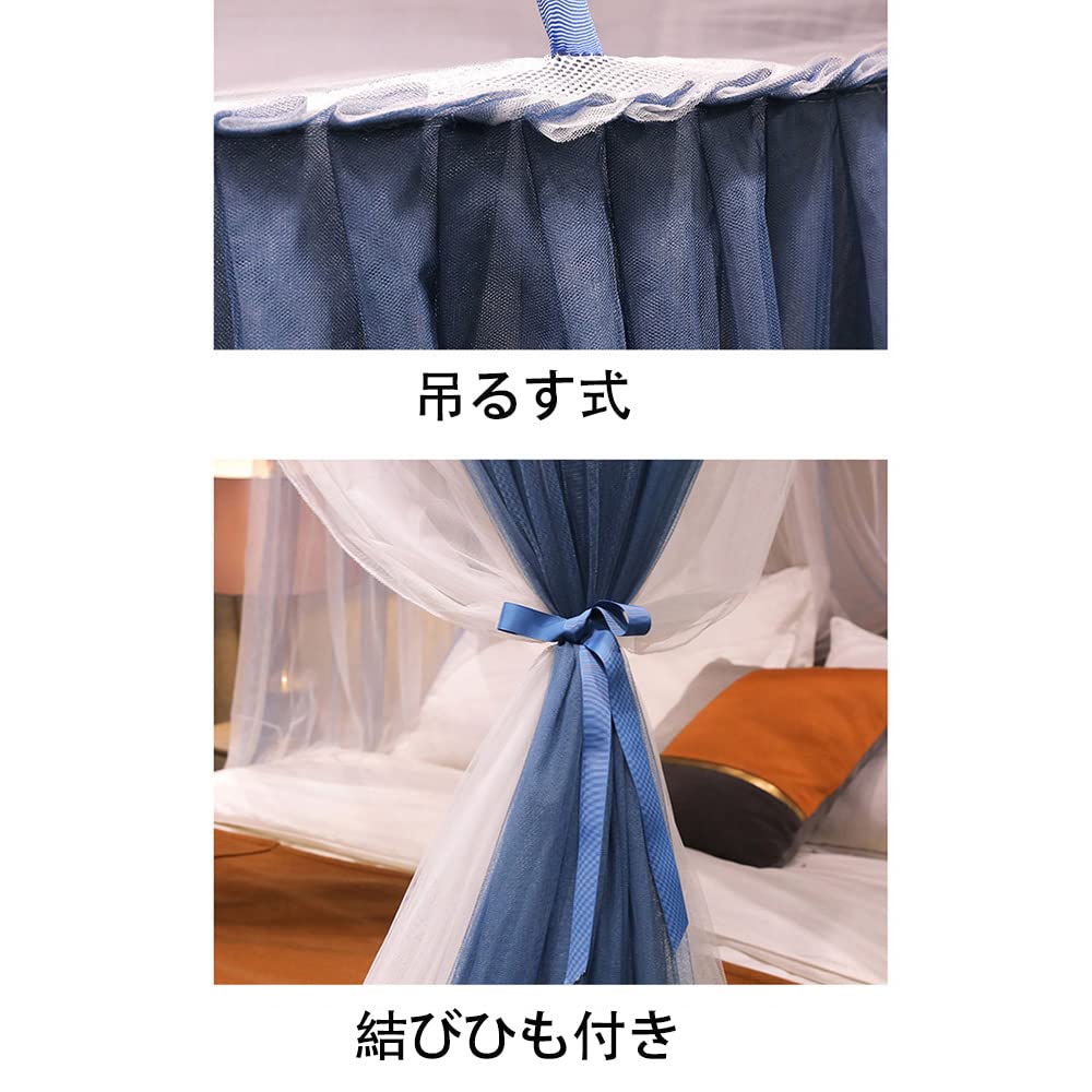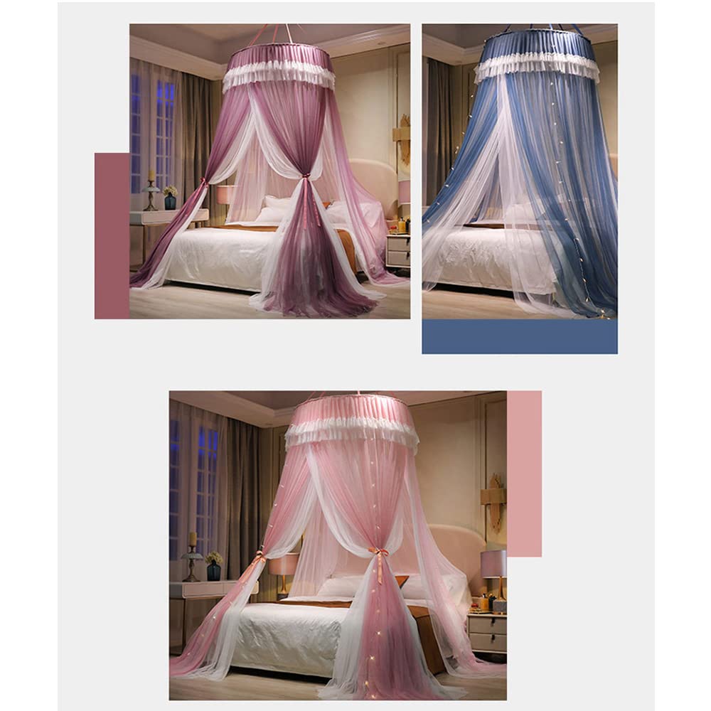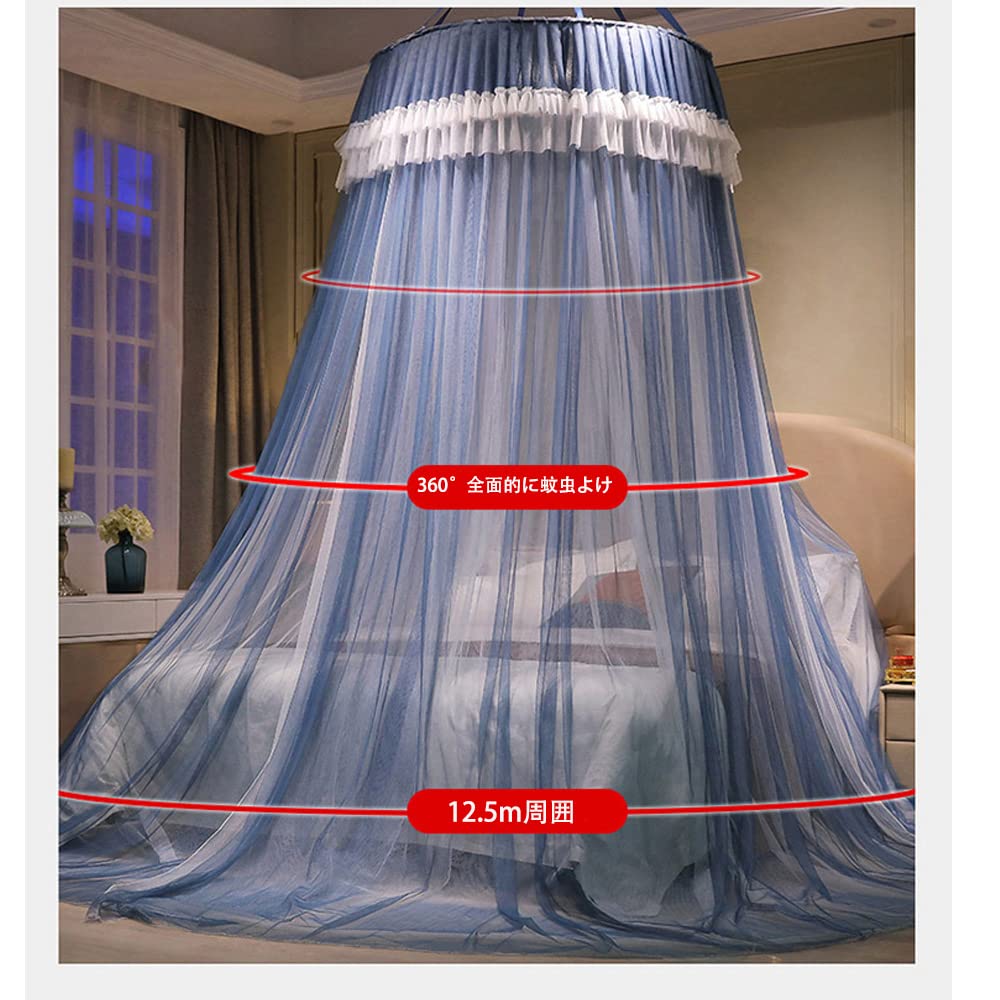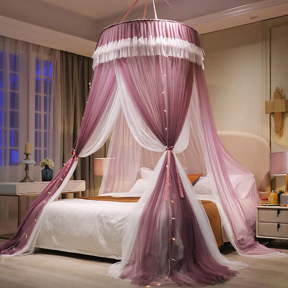 天蓋蚊帳 天蓋カーテン 円形蚊帳 直径110×高さ280cm 吊り下げ 三開け お姫様 防虫 防蚊 イルミネーション ライト別売り (パープル)