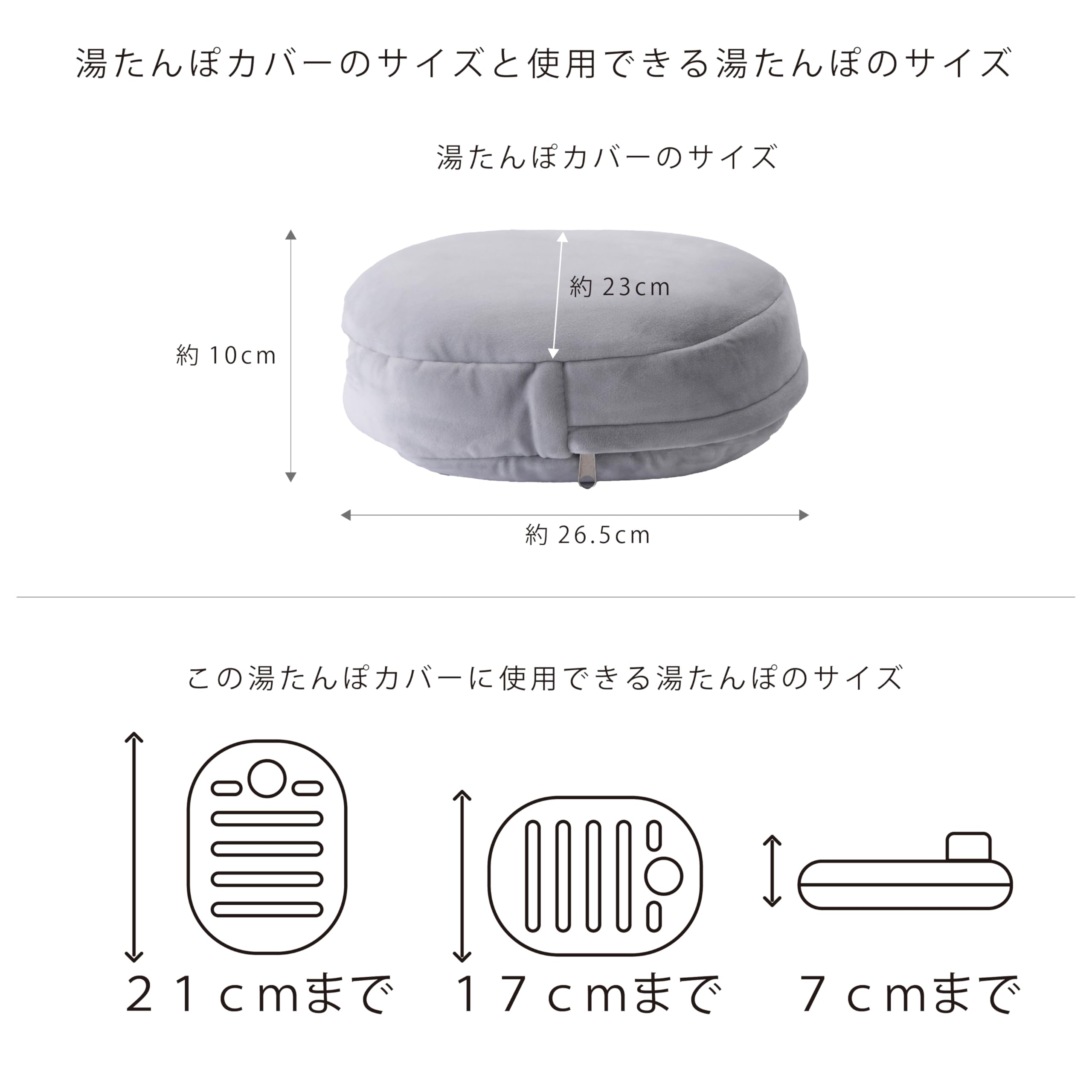 湯たんぽカバーサイズ:約26.5 x 23 x 10cm