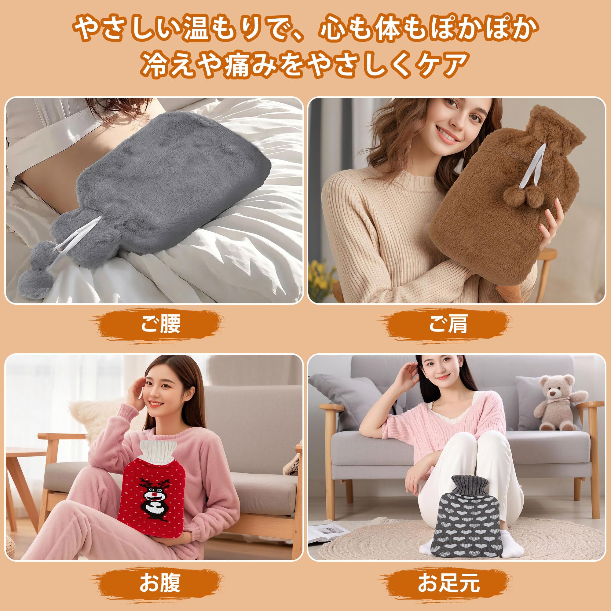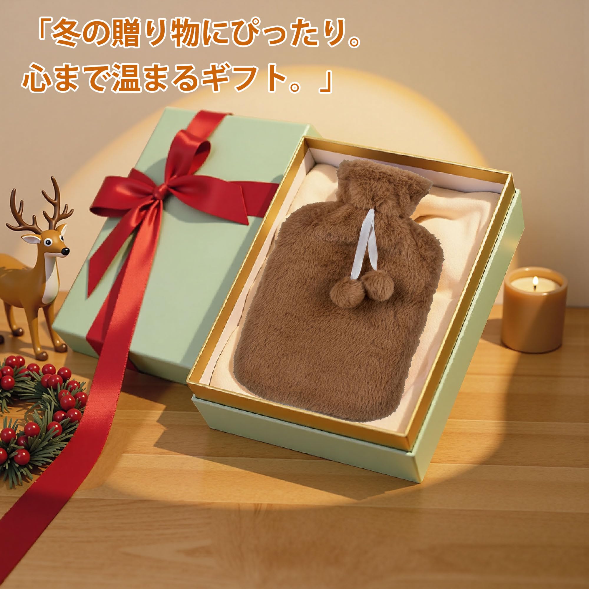 ★高品質な天然ゴムを使用した湯たんぽは、優れた保温効果と柔軟性を兼ね備えています。ふわふわで可愛いデザインのカバーが特徴で、触り心地も抜群です。クリスマスや新年のプレゼントとしても最適で、冬の寒さを優しく温めてくれる防寒グッズです。