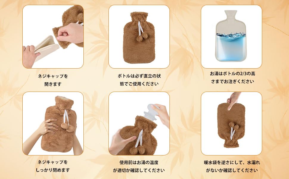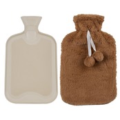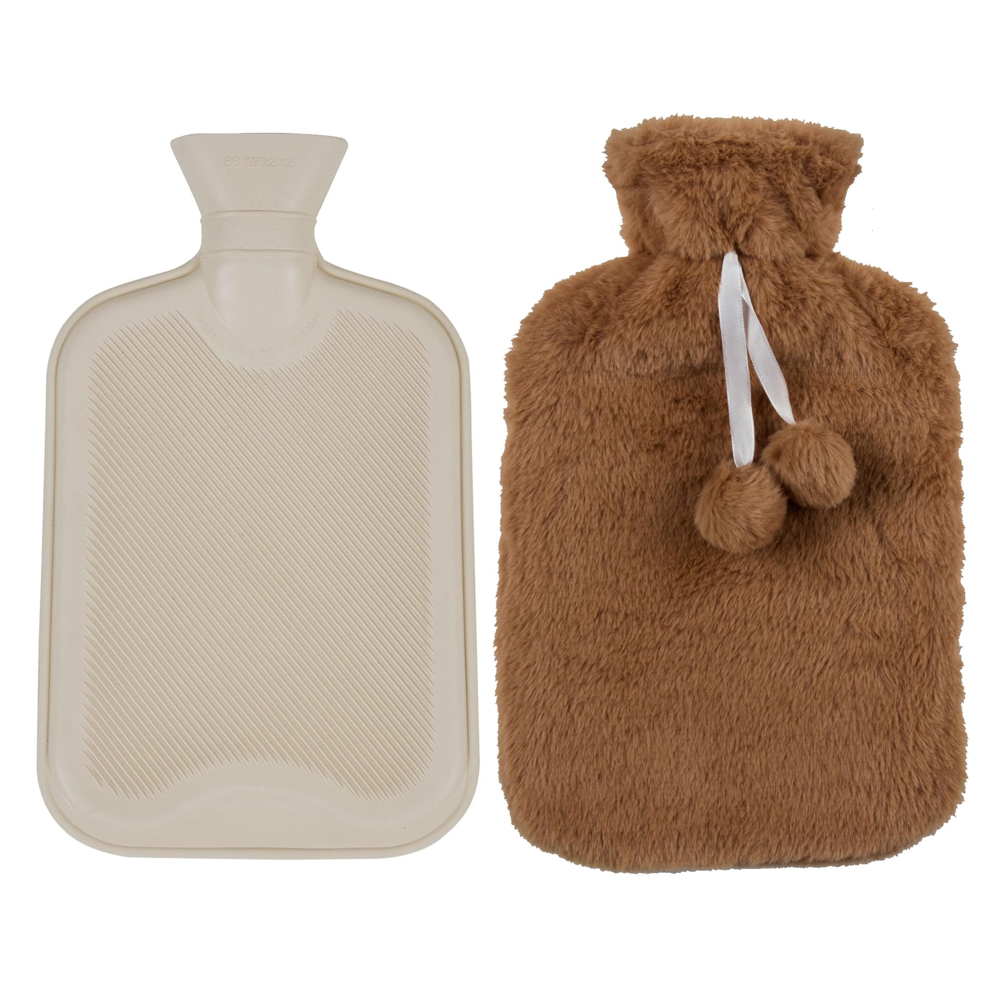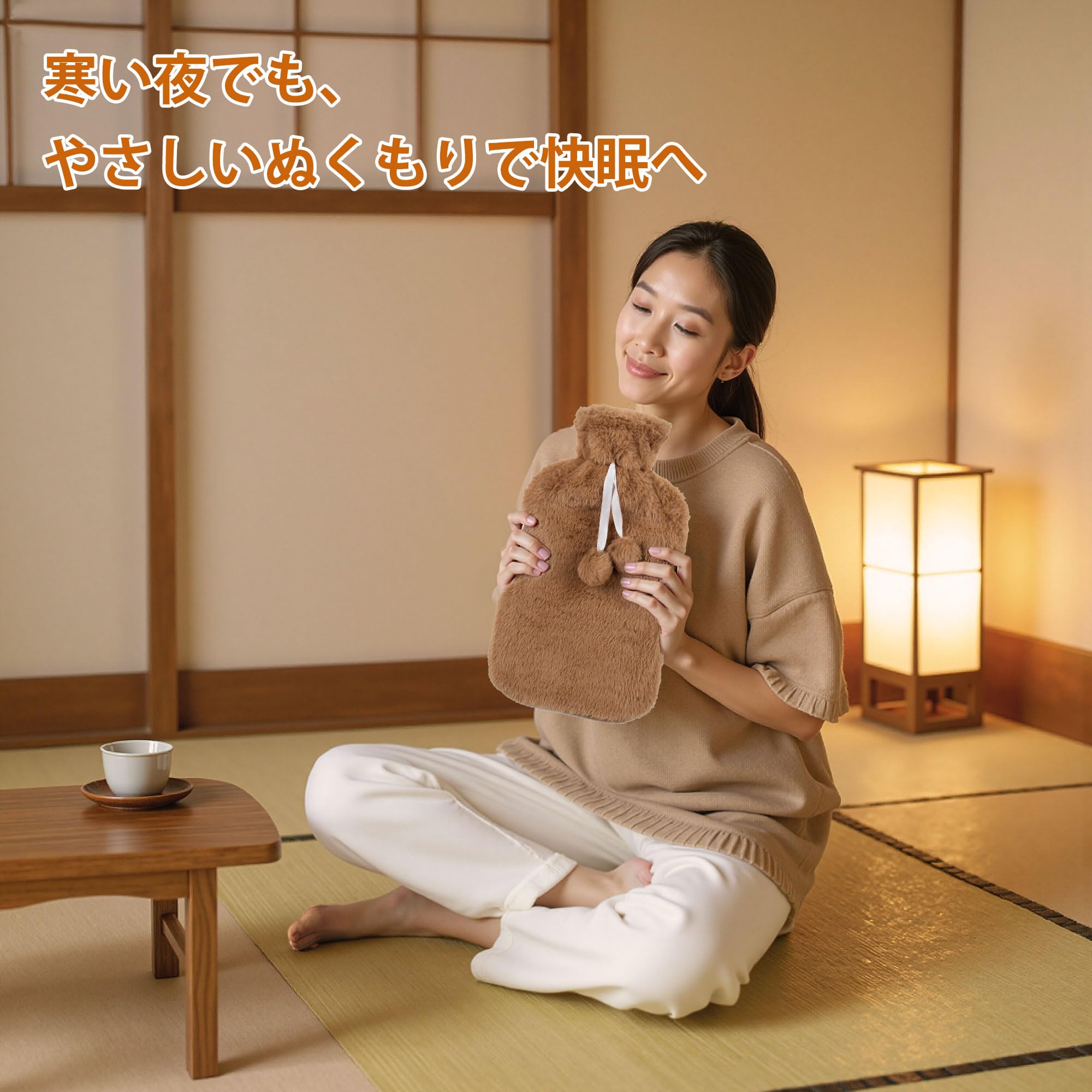 VECELO 湯たんぽ 注水式 ゆたんぽ 湯タンポ かわいい お湯入れ 電気不要 防寒グッズ 安眠グッズ 腹痛緩和 生理期 洗濯可能 容量1.8L ブラウン毛球